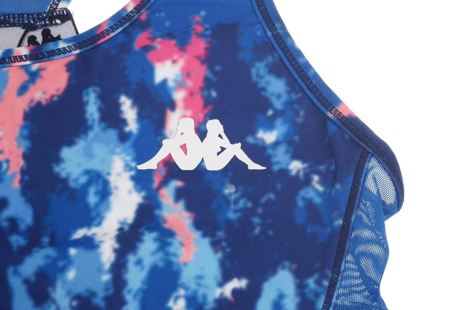 - Stanik marki Kappa w kolorze niebiesko - różowo - białym wykonany z najlepszej jakości poliestru (77%) oraz elastanu (23%). Model o bokserskim tyle z elastycznymi ramiączkami i siateczkowymi panelami po bokach zapewnia wygodę podczas treningów.