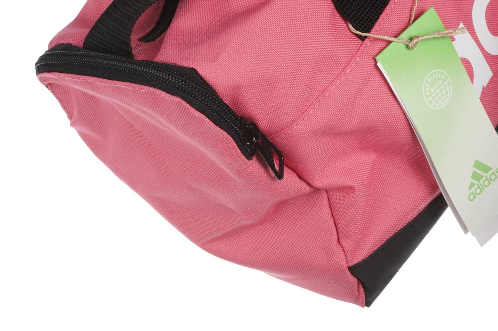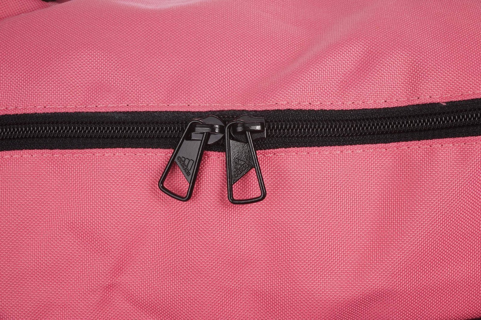 - Torba sportowa marki Adidas w kolorze różowym wykonana w 100% z poliestru. Posiada jedną komorę główną, oraz dwie boczne. Szeroki pasek z miękkim ochraniaczem zapewnia komfort użytkowania.