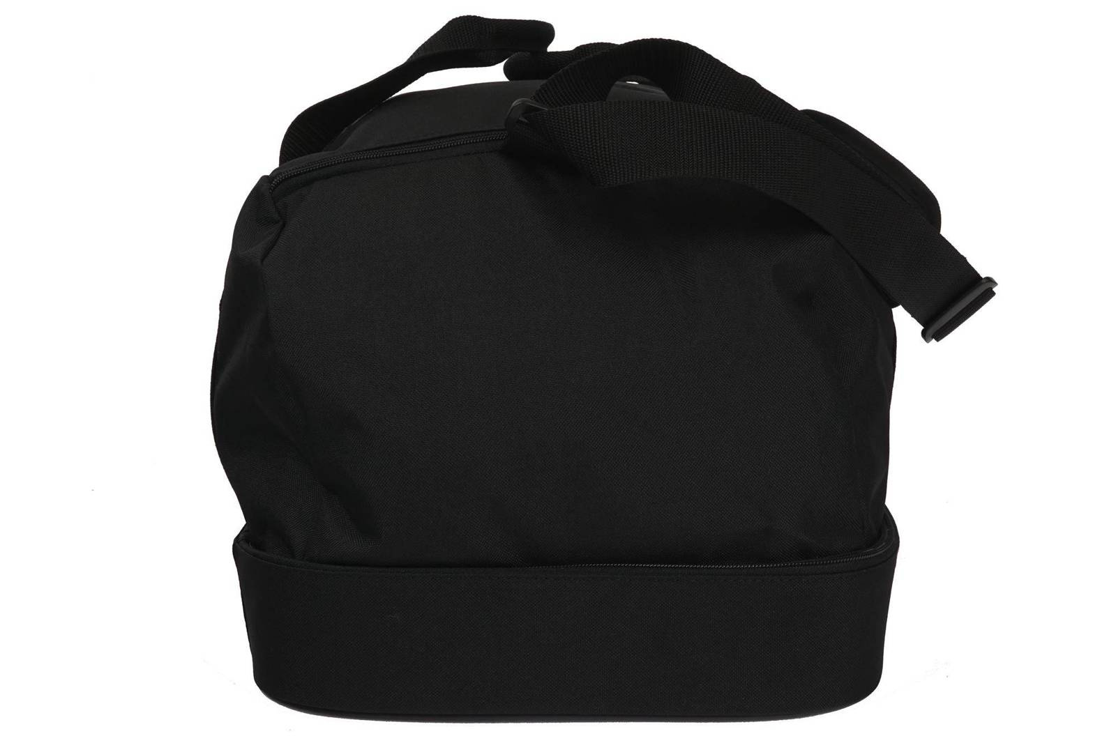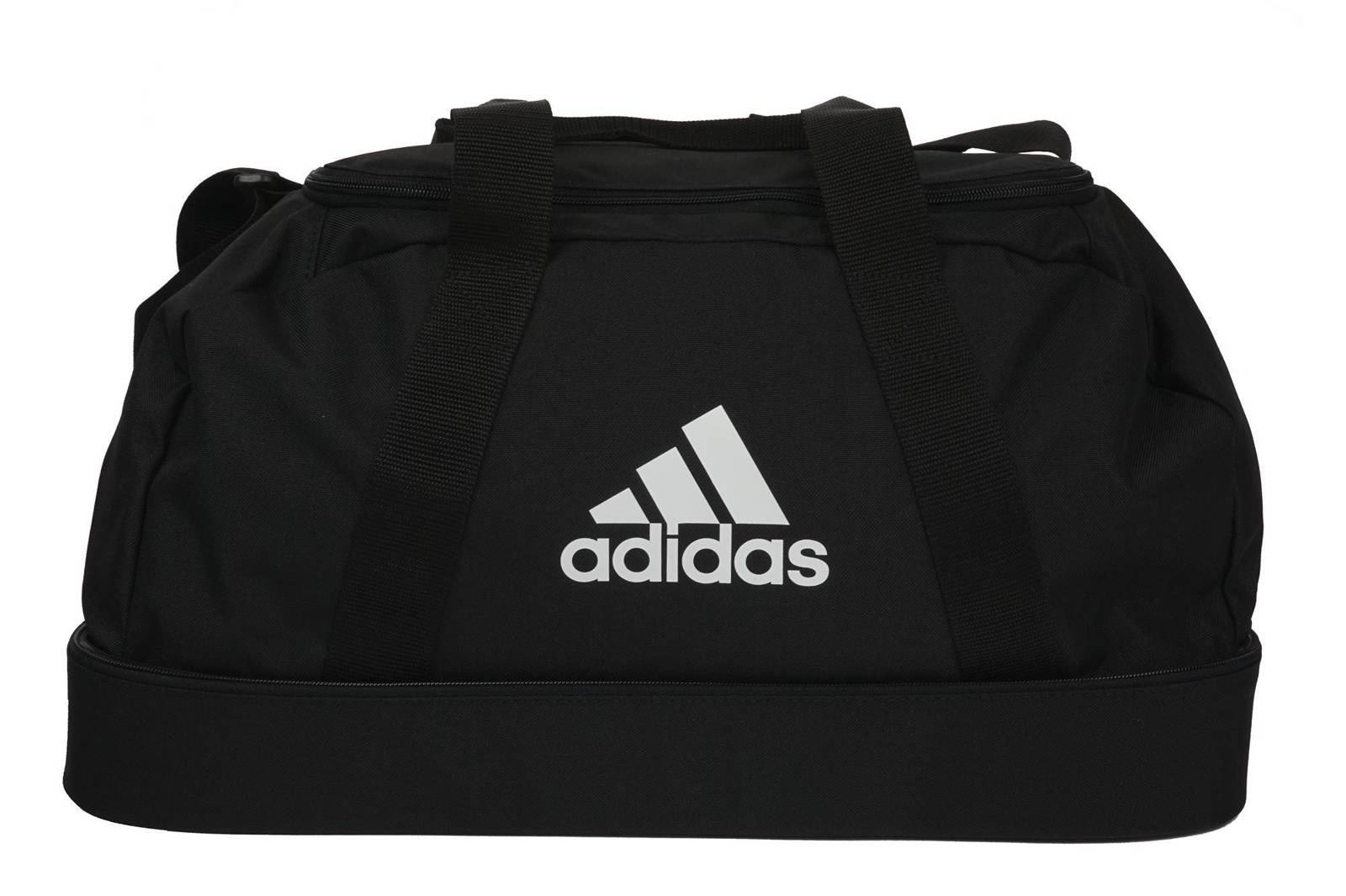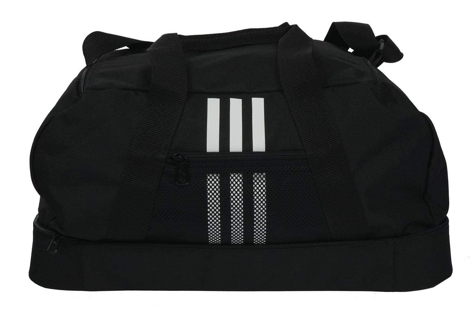 serii Tiro Duffel Bag Bottom Compartment wykonane w 100% z poliestru pochodzącego z recyklingu. Wysoka jakość materiału i solidne wykonanie produkty zapewnia, że torba ta będzie służyć ci przez wiele sezonów. Duża, zamykana na suwak komora główna umożliwia przechowywanie dużej ilości ubrań czy całego sprzętu piłkarskiego. Wewnątrz znajduje się kieszeń, która jest zapinana na zamek i pozwala na bezpieczne przechowywanie najpotrzebniejszych drobiazgów. Na dnie znajduje się odseparowana, duża kieszeń w której można umieścić brudne przedmioty czy obuwie. Długi regulowany pasek umożliwia dopasowanie wysokości torby do twoich potrzeb. Dodatkową zaletą jest uchwyt dzięki któremu można trzymać torbę w dłoni. Na spodzie umieszczono nóżki, które ograniczają możliwość zabrudzenia. Chronią one torbę Adidas przed błotem i przetarciami. Dodatkowo czarna kolorystyka pozwala zachować model ten w czystości i sprawia, że pasuje do każdej stylizacji. Po boku umieszczono białe logo marki Adidas, które dodaje sportowego charakteru. Czarna torba sprawdzi się w wielu sytuacjach nie tylko na trening piłkarskie czy siłownie ale również na wyjazdy na weekend. Jej kolorystyka, rozmiar i wykonanie sprawia, że jest ona świetny wyborem dla wielu osób. Wybierając ten model pomagasz dbać o środowisko, gdyż materiały użyte do jego stworzenia pochodzą z recyklingu. Produkt jest nowy i posiada oryginalne metki.