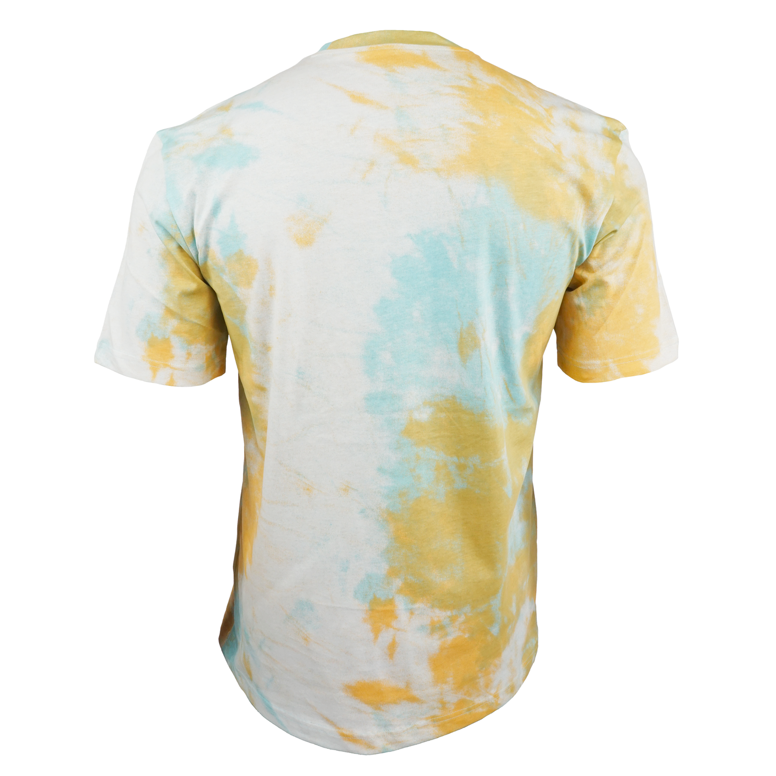 - Koszulka męska tie-dye w kolorze turkusowym i pomarańczowym. Prosty krój, zaokrąglony dekolt zapewniają wygodę. Ciekawe ubarwienie i białe logo Adidas dodaje stylu.