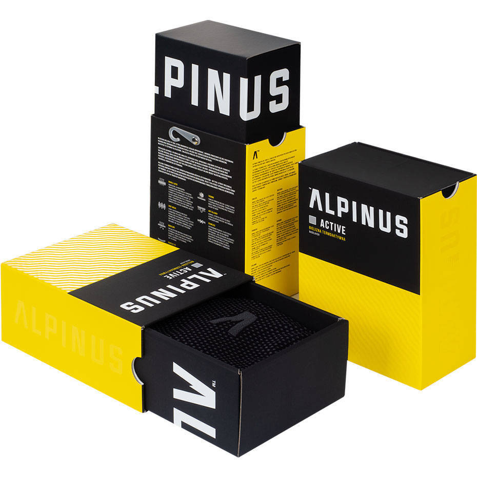 - Damski komplet bielizny termoaktywnej marki Alpinus w kolorze czarnym z szarymi wstawkami składający się z długiej bluzy oraz dopasowanych spodni. Stworzony z antyalergicznych włókien wspartych technologią Thermo, która chroni ciało przed zimnem.