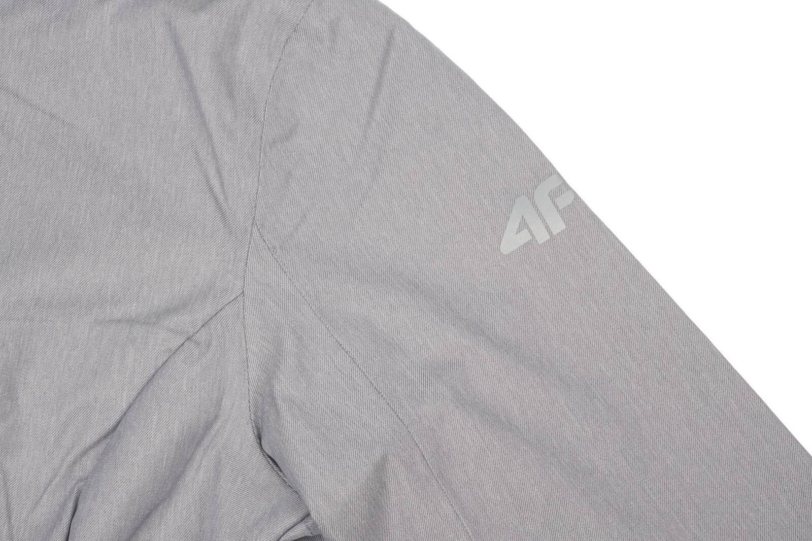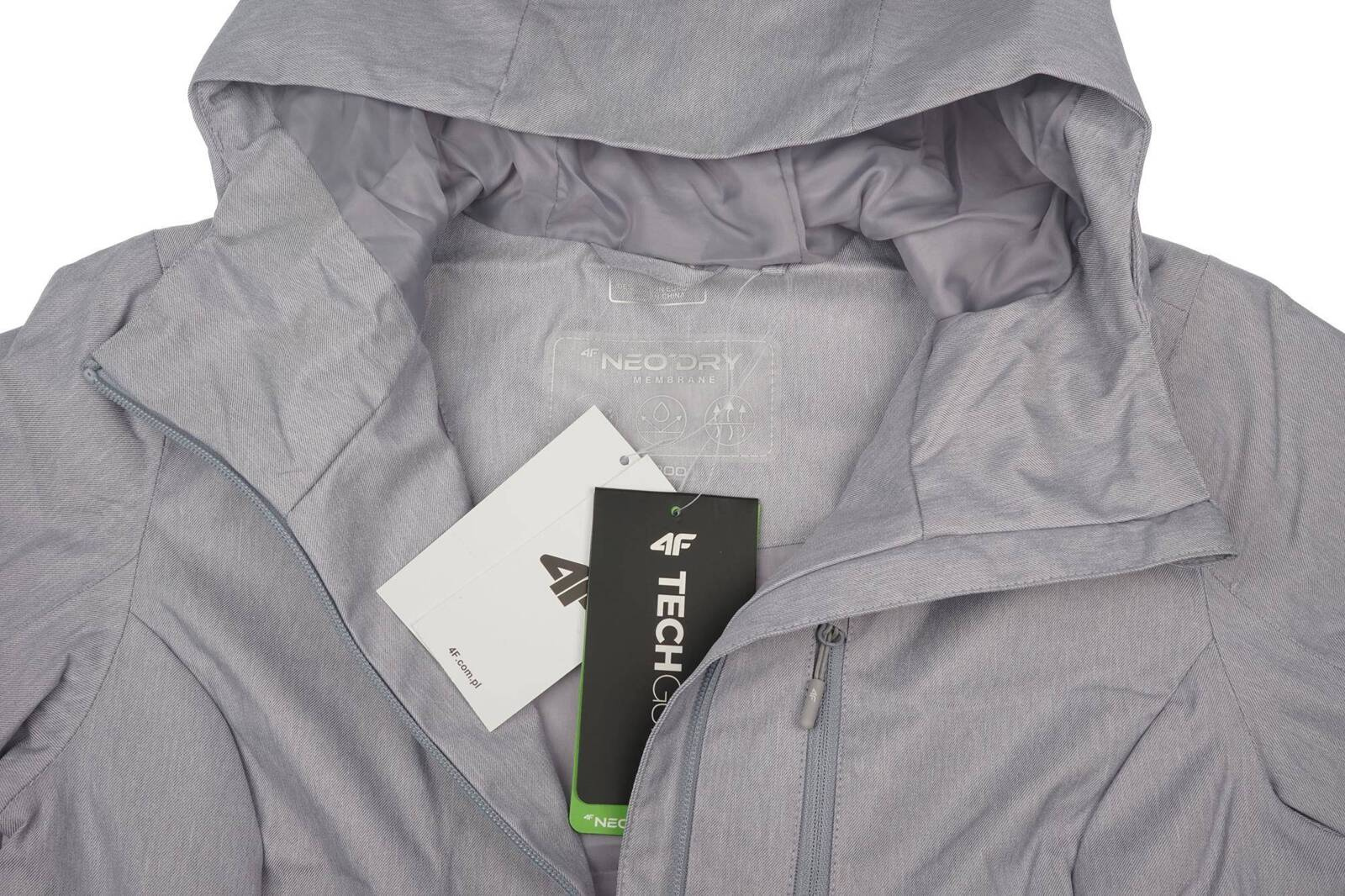 Kurtka damska marki 4F w kolorze szarym wykonana z wysokiego gatunku poliestru. Model o taliowanym kroju z dłuższym tyłem cieszy się niezwykłą funkcjonalnością. Prosty, jednokolorowy design idealnie sprawdzi się do każdej stylizacji. Została ona wzbogacona o membranę NeoDry 5000/3000, która gwarantuje ochronę przed lekki deszczem oraz wiatrem, zachowując przy tym właściwości oddychające. Dodatkową ochroną jest impregnacja materiału oraz uszczelnienie szwów. Kurtkę wyposażono w nieodpinany, regulowany kaptur połączony z wysokim kołnierzem chroniącym szyję i głowę. Zamek zakończono patką, chroniąco podbródek przed podrażnieniami. Rękawy oraz dół kurki mają możliwość regulacji, co zapewnia indywidualne dopasowanie do każdej sylwetki. Po zewnętrznej stronie umieszczono 3 zasuwane kieszenie, po wewnętrznej jedną na rzep, gdzie można bezpiecznie przechować najpotrzebniejsze rzeczy. Idealnie sprawdzi się w każdej damskiej garderobie, świetna zarówno do sportowych stylizacji, jak i tych codziennych. Produkt jest nowy, posiada oryginalne metki.