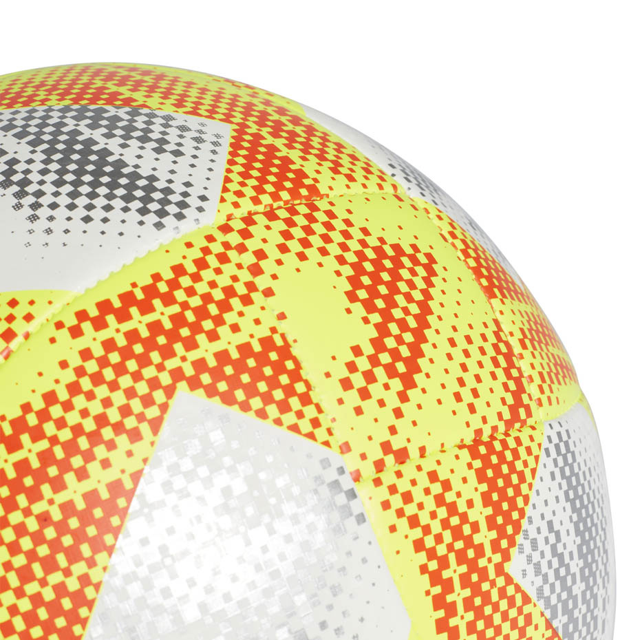 Piłka marki Adidas z serii w kolorze żółto - pomarańczowo - białym. Model przeznaczony do treningów na poziomie podstawowym, na nawierzchniach naturalnych. Piłka szyta maszynowo, co zapewnia jej długą żywotność. Posiada butylowy pęcherz, który odpowiada za prawidłowe napełnienie powietrzem. Ciekawy design ożywi twoje treningi i przykuje uwagę niejednego piłkarza. Produkt jest nowy, posiada oryginalne metki.