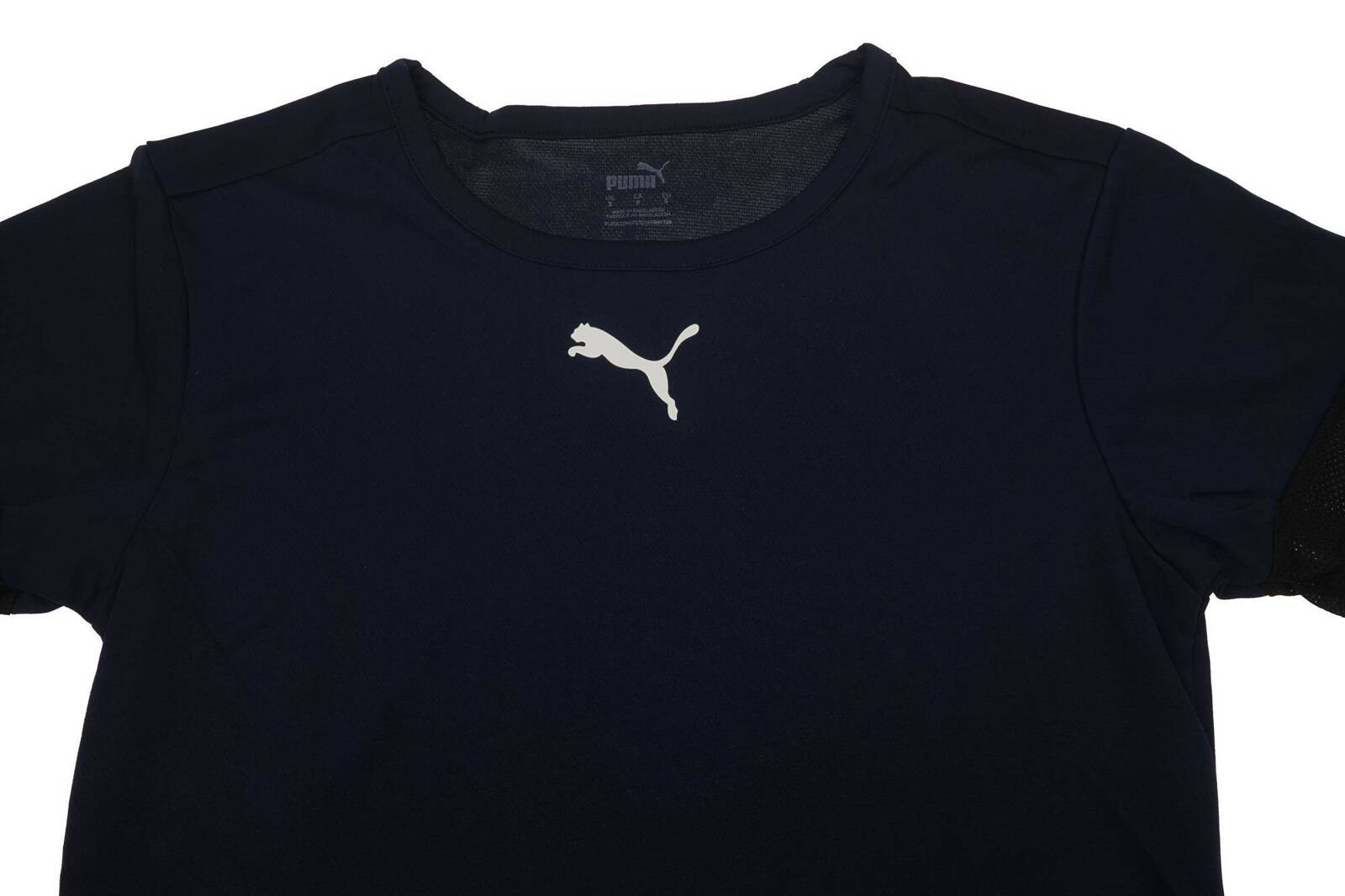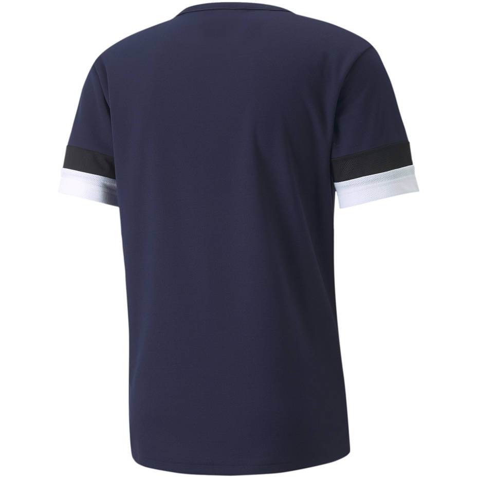 - Męska koszulka marki Puma w kolorze granatowym z biało - czarnymi wstawkami na rękawach z linii teamRISE. Wykonana z wysokiej jakości dzianiny wspartej technologią DryCELL.