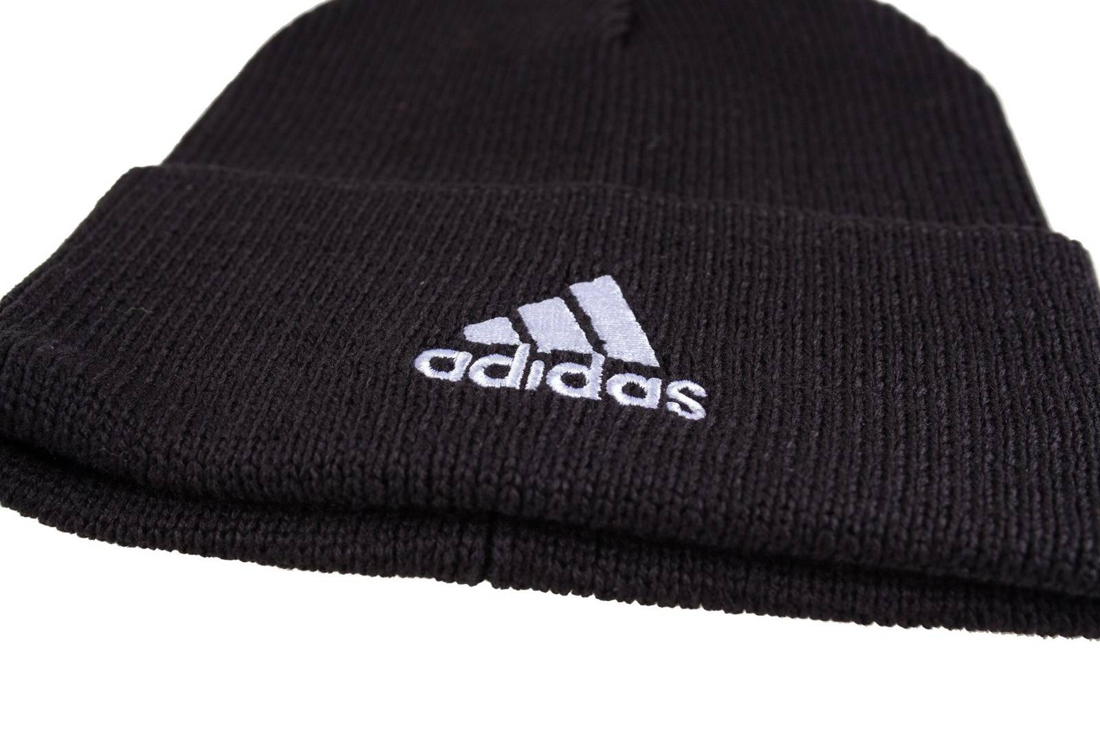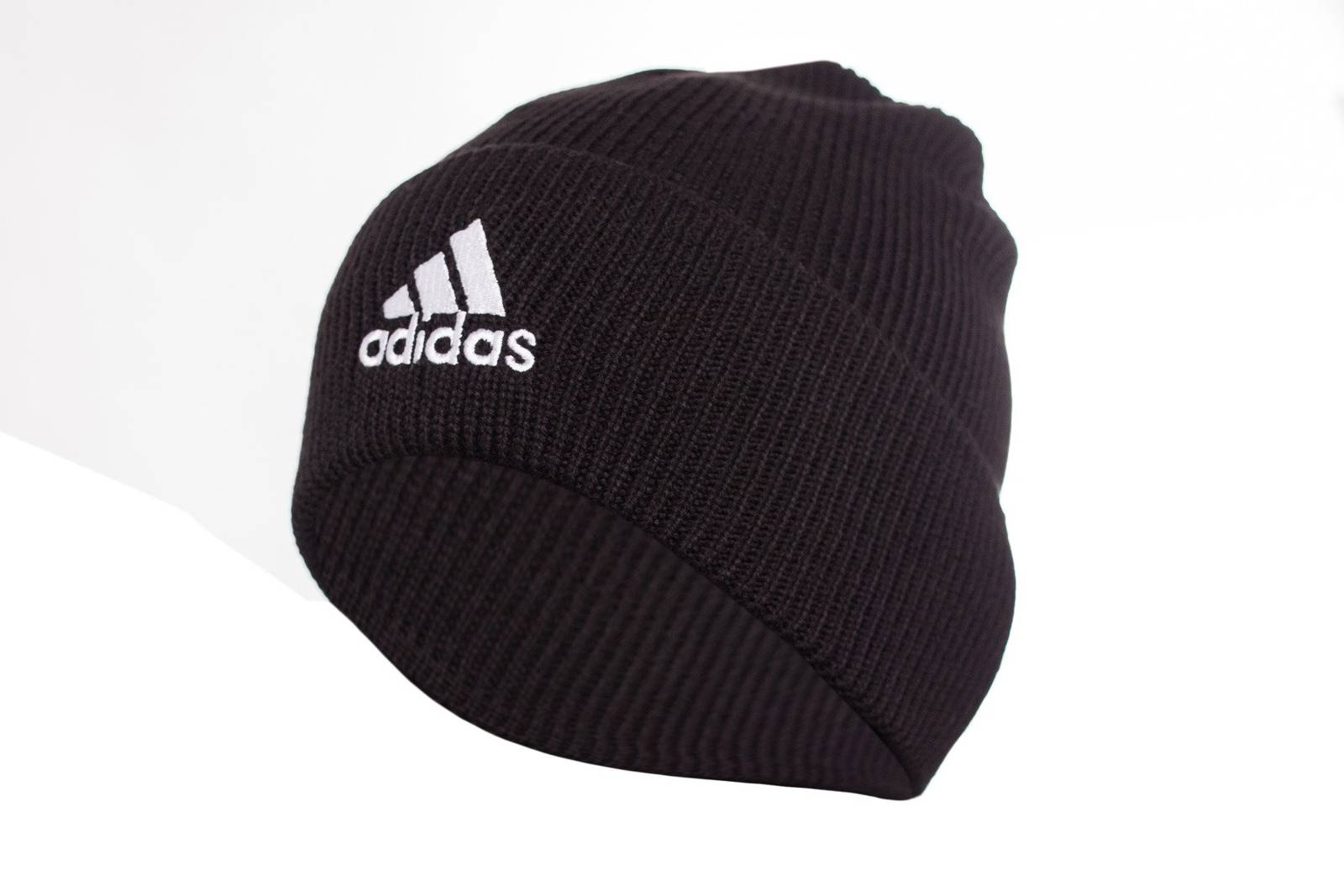 - Czapka Adidas z serii Tiro, w kolorze czarnym, z białym, wyszywanym logotypem Adidas. Klasyczny model czapki został wykonany ze 100% poliakrylu. Ciepła czapka w kolorze czarnym sprawdzi się doskonale podczas chłodnych dni.