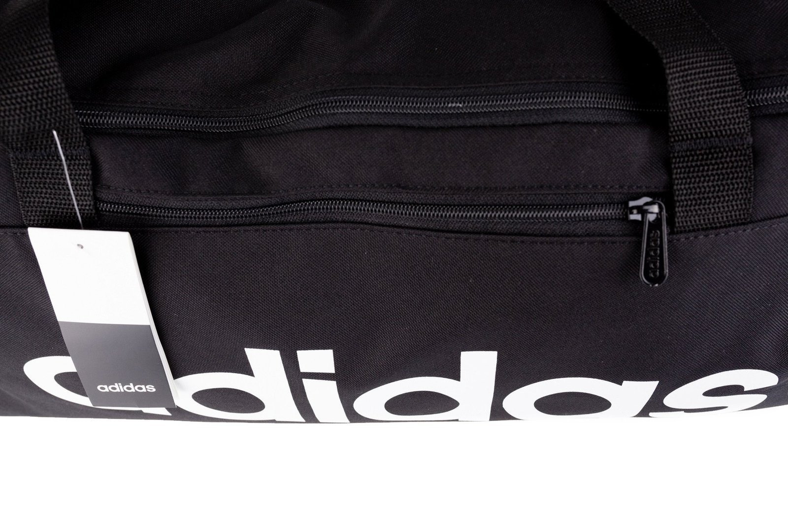 - Torba marki Adidas z serii Linear Core Duffel rozmiar M w kolorze czarnym została wykonana w 100% z najwyższej jakości solidnego i wytrzymałego poliestru. Jest pojemna, świetnie sprawdzi się nie tylko podczas wyjść na siłownię, trening czy basen.