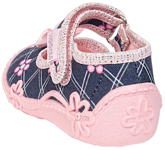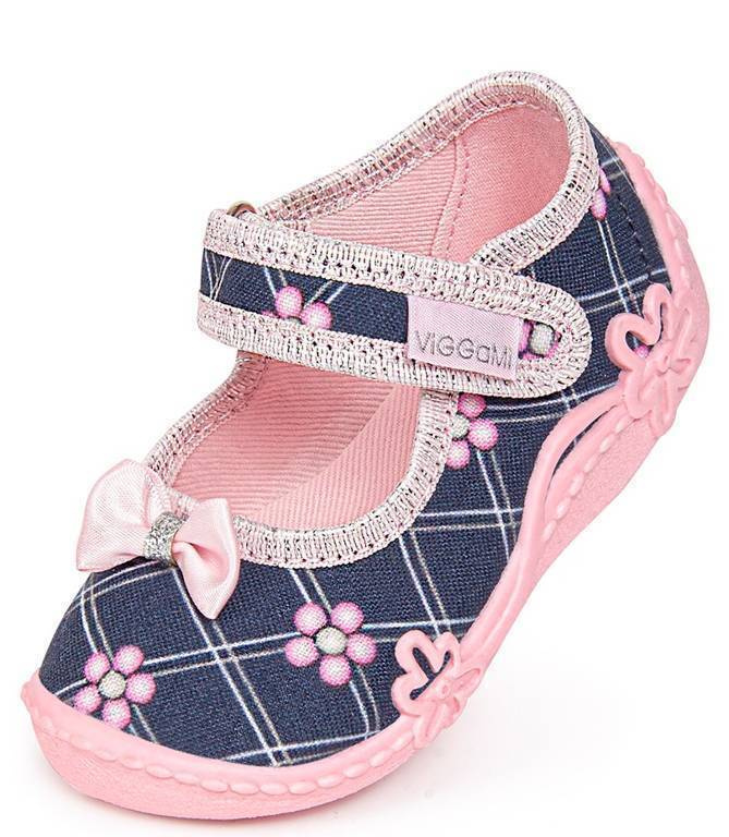 - Tenisówki dziecięce Viggami w granatowym kolorze z ciekawym wzorkiem i kokardką na przodzie. Kapcie są zapinanie na rzep co znacznie ułatwia samodzielne zakładanie obuwia przez dziecko. Posiadają certyfikat zdrowej stopy.