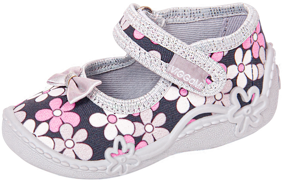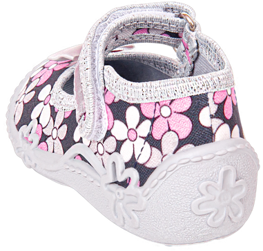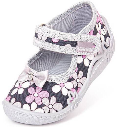 Tenisówki dziecięce Viggami ZOSIA KWIATKI szare kapcie dziewczęce na rzep