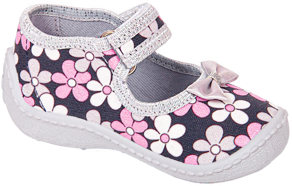 - Tenisówki dziecięce Viggami w granatowym kolorze z ciekawym wzorkiem i kokardką. Kapcie są zapinanie na rzep co znacznie ułatwia samodzielne zakładanie obuwia przez dziecko. Posiadają certyfikat zdrowej stopy.