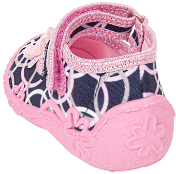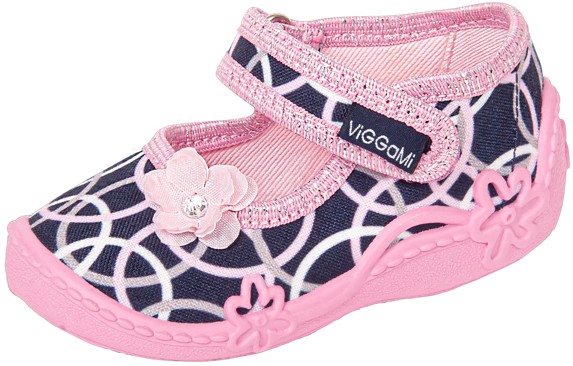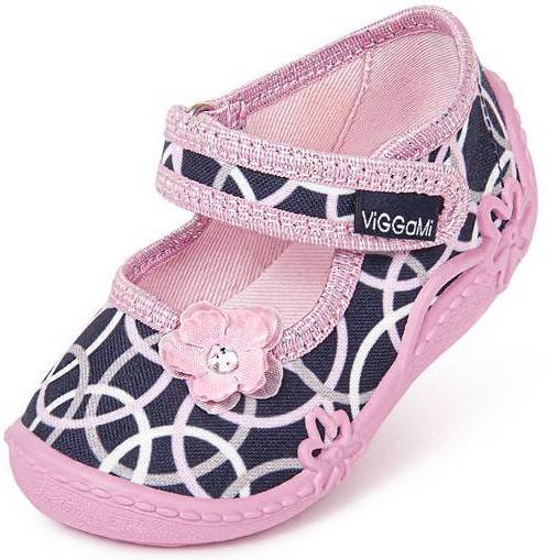 - Tenisówki dziecięce Viggami w granatowym kolorze z ciekawym wzorkiem i kokardką. Kapcie są zapinanie na rzep co znacznie ułatwia samodzielne zakładanie obuwia przez dziecko. Posiadają certyfikat zdrowej stopy.