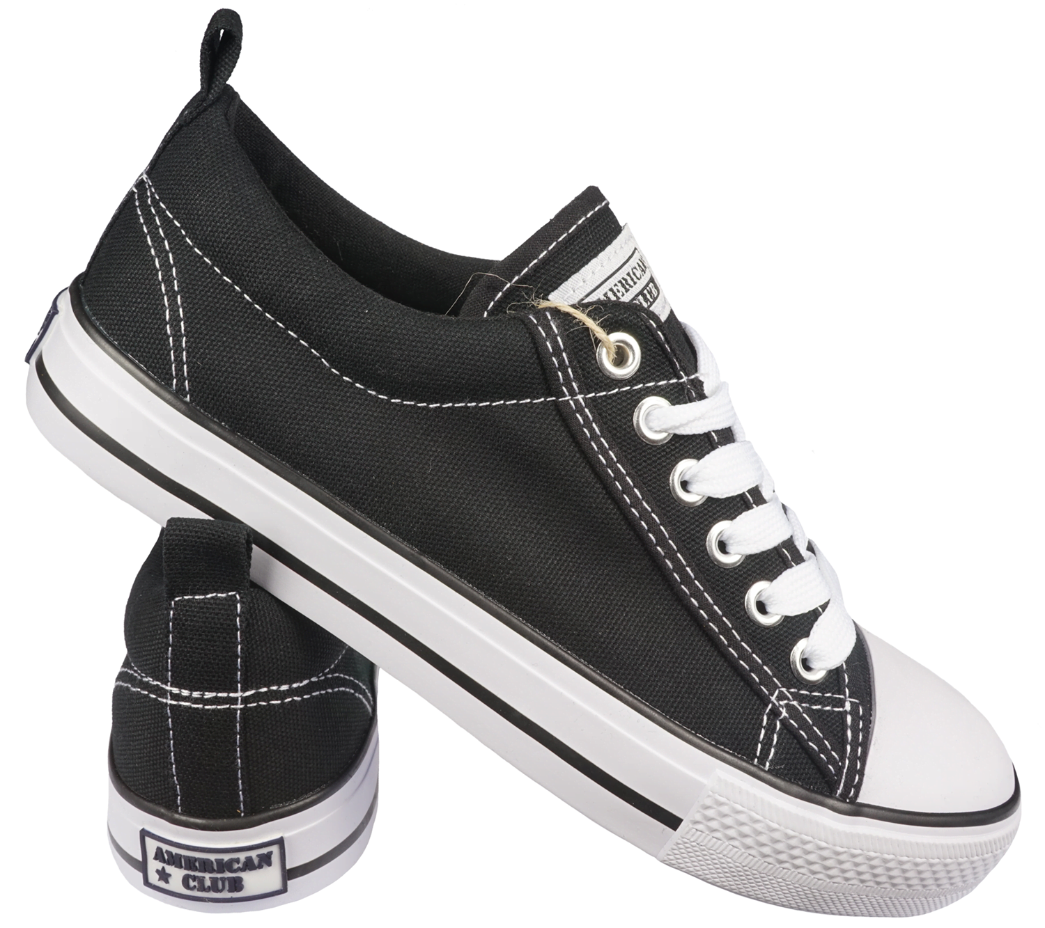 - Tenisówki męskie firmy American Club w kolorze czarnym. Wykonane zostały bardzo solidnie i starannie z materiałów tekstylnych o wysokiej jakości.