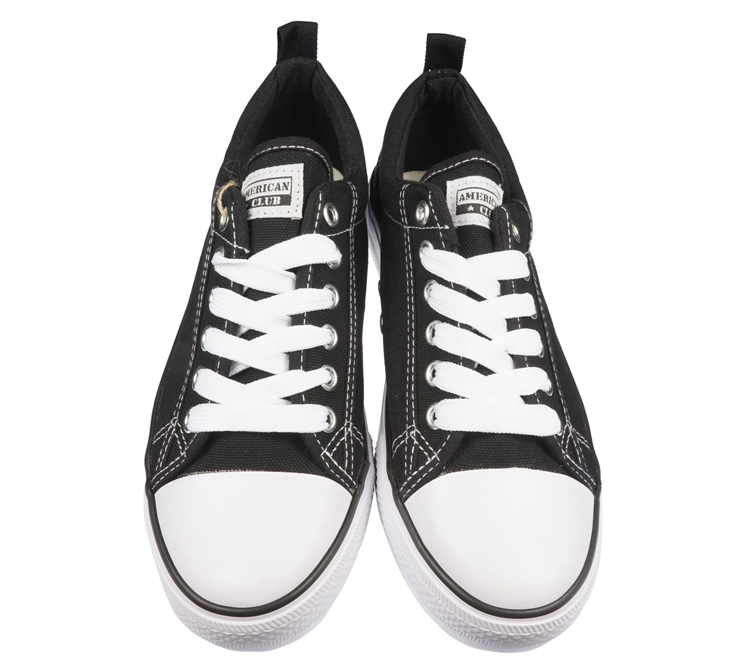 Tenisówki męskie w kolorze czarnym, których producentem jest firma American Club. Zostały wykonane z materiałów tekstylnych o bardzo dobrej jakości, model jest solidny, schludnie wykonany i dobrze leży na nodze. Buty posiadają grubą, gumową podeszwę co zapewnia im trwałość i bardzo dobrą przyczepność do podłoża. Wnętrze jest bardzo delikatne i przyjazne dla skóry. Tenisówki te są lekkie i wygodne. Potrzebujesz obuwia do pracy? Do szkoły? Po prostu do użytku na co dzień? Ten model jest stworzony dla ciebie. Dostępne są w rozmiarach 41-46.