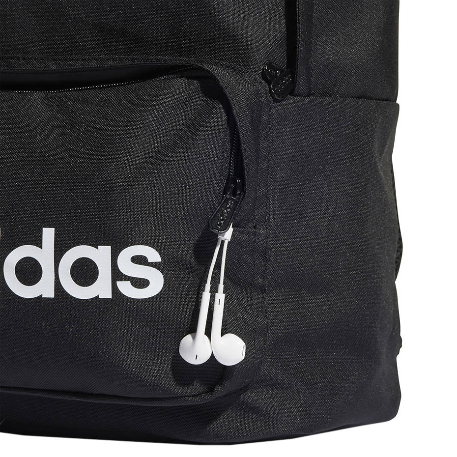 Plecak Adidas w kolorze czarnym idealna do szkoły, na trening lub na codzienne wypady. Wykonana z wysokiej jakości poliestru pochodzącego z recyklingu, co przyczynia się do ochrony środowiska. Mocny materiał o płóciennym splocie zapewni wytrzymałość plecakowi Adidas. Posiada dużą komorę główną zasuwaną dwubiegunowym zamkiem, który ułatwia szybki dostęp do schowanych przedmiotów. Wewnątrz znajduje się przegroda boczna, która odizolowuje laptopa lub książki. Przedednia kieszeń na froncie jest zasuwana na zamek - jest to idealne miejsce na przechowywanie najpotrzebniejszych przedmiotu typu klucze, portfel, przybory szkolne lub posiłek czy przekąskę. Dodatkowo kieszenie boczne pomieszczą bidon lub inne drobiazgi. Kolejną dużą zaletą plecaku Adidas są miękkie, regulowane, ergonomiczne szelki. Pozwala to na idealne dopasowanie i zmniejszenie ryzyka podrażnia skóry nawet przy całodniowym użytkowaniu plecaka. Górny uchwyt zapewnia łatwe powieszenie plecaka lub przenoszenie go w dłoni. Czarna kolorystyka sprawia, że plecak Adidas jest praktyczna i sprawdzi się w wielu sytuacjach. Biały, kontrastujący ze stonowaną kolorystyką, napis Adidas urozmaicają prosty design i dodaje sportowego charakteru. Produkt jest nowy, oraz oryginalny.
