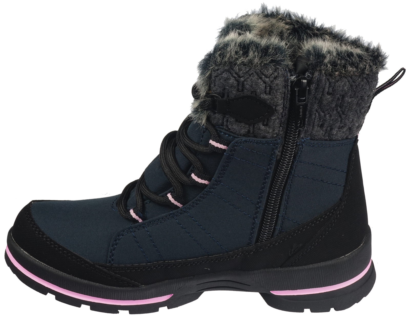 Zimowe buty dziecięce Firmy American Club w kolorze granatowym. Obuwie solidne, wygodne i ładnie się prezentuje. Buty zostały wykonane z wysokiej jakości materiałów, posiadają cholewkę Softshell która chroni przed niską temperaturą, wiatrem, deszczem oraz śniegiem. Dodatkowo posiadają wodoodporną membranę Tripletex. Gruba podeszwa z bieżnikiem zapewnia dobrą przyczepność do podłoża oraz wygodę użytkowania. Wnętrze buta jest ocieplane co zapewni odpowiednią temperaturę nawet podczas zimowych dni. Dodatkowymi plusami są wiązanie i zamek na boku które sprawiają, że buty idealnie dopasowują się do stopy oraz ułatwiają i przyspieszają ich zakładanie. Podsumowując, buty w idealny sposób sprawdzą się w jesienne oraz zimowe dni do codziennego użytku czy też w górskie wyprawy.