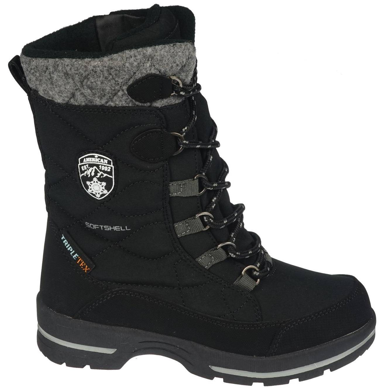 - Zimowe buty dziecięce Firmy American Club w kolorze czarnym. Zostały wykonane z wysokiej jakości materiałów, posiadają cholewkę Softshell która chroni przed niską temperaturą, wiatrem, deszczem oraz śniegiem.