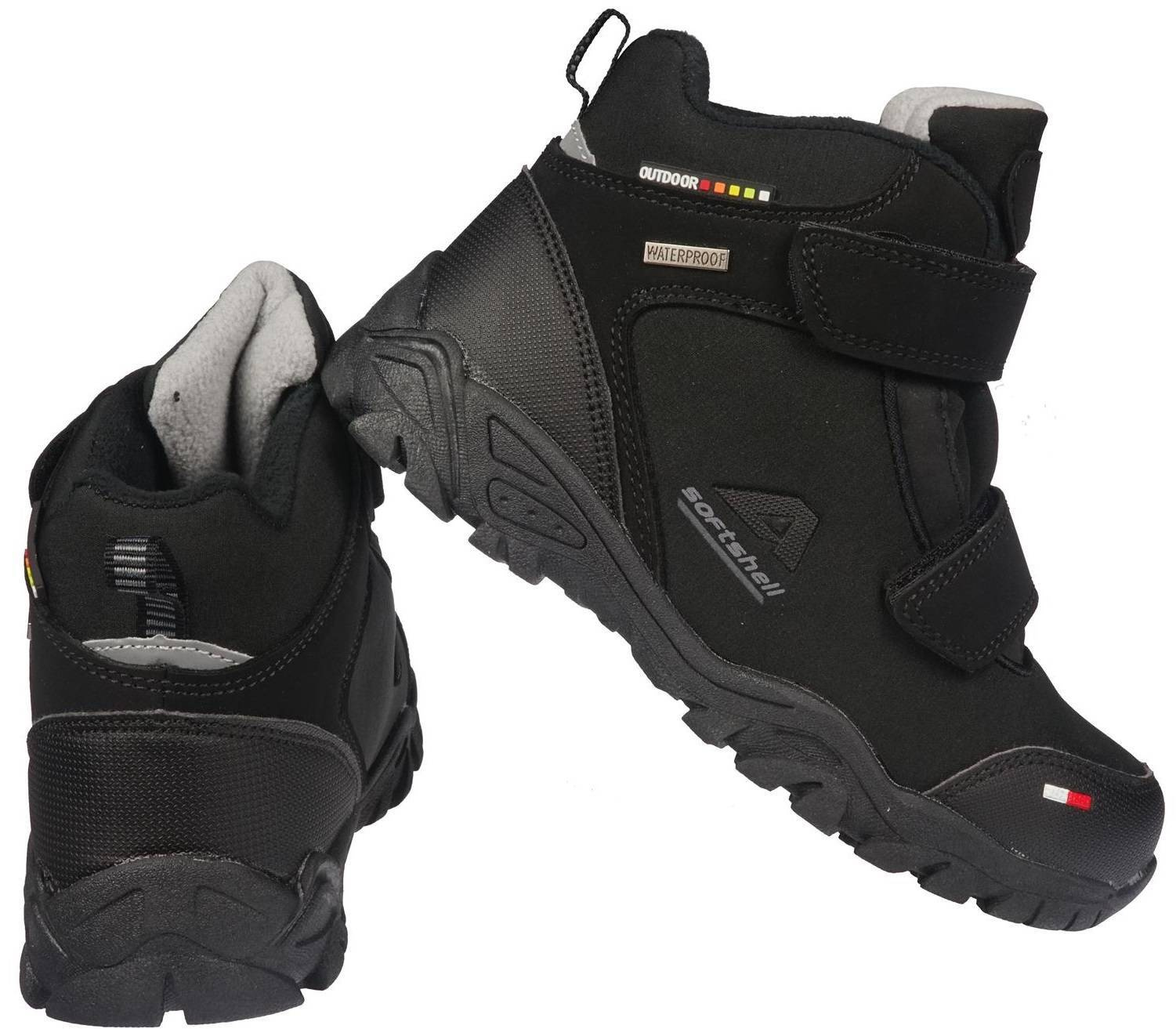 Zimowe buty dziecięce Firmy American Club w kolorze czarnym. Obuwie solidne, wygodne i ładnie się prezentuje. Buty zostały wykonane z wysokiej jakości materiałów, posiadają cholewkę Softshell która chroni przed niską temperaturą, wiatrem, deszczem oraz śniegiem. Dodatkowo posiadają wodoodporną membranę Tripletex. Gruba podeszwa z bieżnikiem zapewnia dobrą przyczepność do podłoża oraz wygodę użytkowania. Wnętrze buta jest ocieplane co zapewni odpowiednią temperaturę nawet podczas zimowych dni. Rzepy które sprawiają, że obuwie idealnie dopasowuje się do stopy oraz ułatwiają i przyspieszają ich zakładanie. Podsumowując, buty w idealny sposób sprawdzą się w jesienne oraz zimowe dni do codziennego użytku czy też w górskie wyprawy.