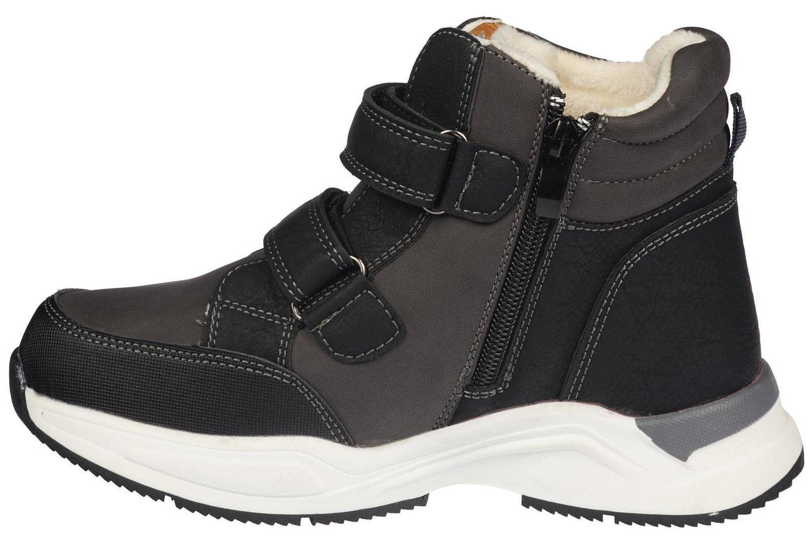 Zimowe buty dziecięce Firmy American Club w kolorze czarnym. Obuwie solidne, wygodne i ładnie się prezentuje. Solidnie i starannie wykonane z wysokiej jakości skóry ekologicznej w ciekawym designie. Gruba podeszwa z bieżnikiem zapewnia dobrą przyczepność do podłoża oraz wygodę użytkowania. Wnętrze buta jest ocieplane co zapewni odpowiednią temperaturę nawet podczas zimowych dni. Rzep i zamek które sprawiają, że obuwie idealnie dopasowuje się do stopy oraz ułatwiają i przyspieszają ich zakładanie. Podsumowując, buty w idealny sposób sprawdzą się w jesienne oraz zimowe dni do codziennego użytku czy też w górskie wyprawy.