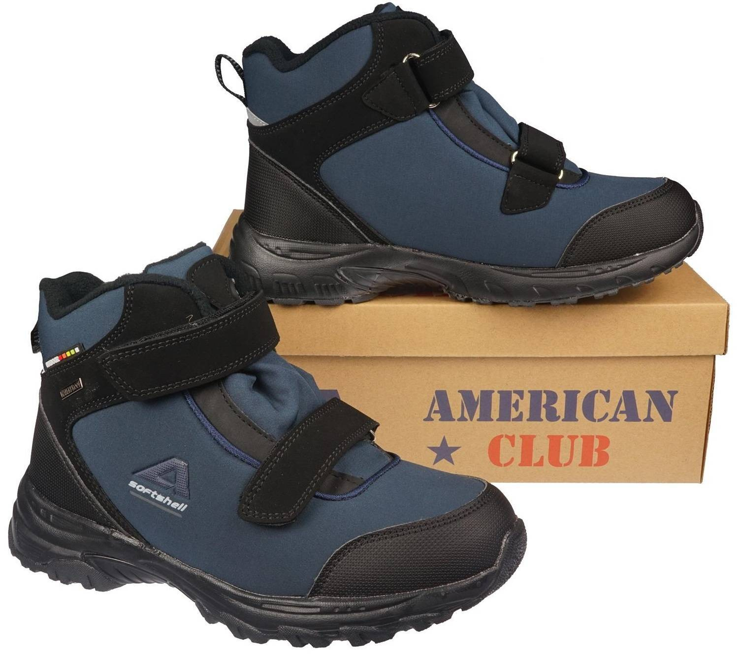- Zimowe buty damskie Firmy American Club w kolorze granatowym. Posiadają cholewkę Softshell która chroni przed niską temperaturą, wiatrem, deszczem oraz śniegiem. Dodatkowo posiadają wodoodporną membranę Tripletex.