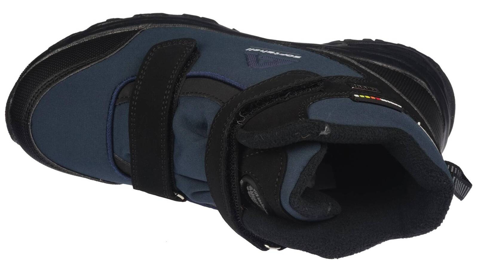 Zimowe buty damskie Firmy American Club w kolorze granatowym. Obuwie solidne, wygodne i ładnie się prezentuje. Buty zostały wykonane z wysokiej jakości materiałów, posiadają cholewkę Softshell która chroni przed niską temperaturą, wiatrem, deszczem oraz śniegiem. Dodatkowo wodoodporna membrana Tripletex. Gruba podeszwa z bieżnikiem zapewnia dobrą przyczepność do podłoża oraz wygodę użytkowania. Wnętrze buta jest ocieplane co zapewni odpowiednią temperaturę nawet podczas zimowych dni. Dodatkowymi plusami są rzepy które sprawiają, że obuwie idealnie dopasowuje się do stopy oraz ułatwiają i przyspieszają zakładanie. Podsumowując, buty w idealny sposób sprawdzą się w jesienne oraz zimowe dni do codziennego użytku czy też w górskie wyprawy.
