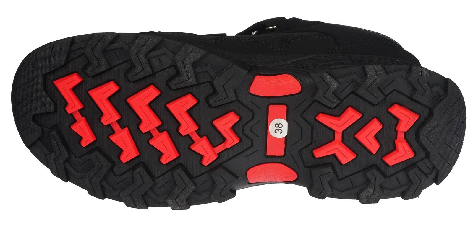 Zimowe buty damskie Firmy American Club w kolorze czarnym. Obuwie solidne, wygodne i ładnie się prezentuje. Buty zostały wykonane z wysokiej jakości materiałów, posiadają cholewkę Softshell która chroni przed niską temperaturą, wiatrem, deszczem oraz śniegiem. Dodatkowo wodoodporna membrana Tripletex. Gruba podeszwa z bieżnikiem zapewnia dobrą przyczepność do podłoża oraz wygodę użytkowania. Wnętrze buta jest ocieplane co zapewni odpowiednią temperaturę nawet podczas zimowych dni. Dodatkowymi plusami są rzepy które sprawiają, że obuwie idealnie dopasowuje się do stopy oraz ułatwiają i przyspieszają zakładanie. Podsumowując, buty w idealny sposób sprawdzą się w jesienne oraz zimowe dni do codziennego użytku czy też w górskie wyprawy.