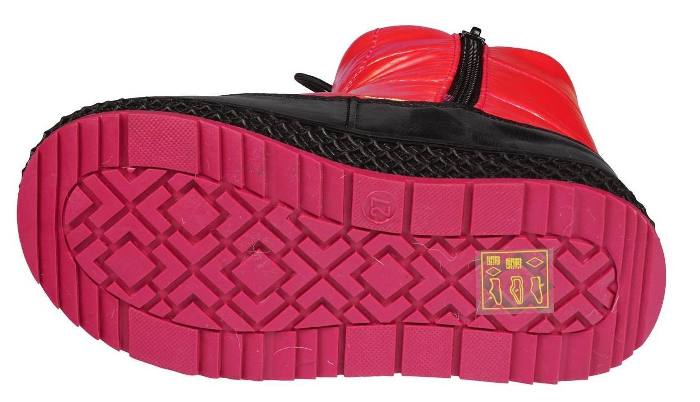 Zimowe buty dziecięce Firmy Clibee w kolorze brzoskwiniowym z metalicznym wykończeniem. Wysokie buty za kostkę wykonane z ortalionu, materiał ten jest wodoodporny i doskonale chroni podczas chłodu, deszczu i wiatru. Gruba gumowa podeszwa z bieżnikiem zabezpiecza przed poślizgnięciami na śliskich powierzchniach. Wnętrze buta dziecięcego jest ocieplane co zapewnia odpowiednią temperaturę nawet podczas zimowych dni. Zamek ułatwia zakładanie bucików, a ściągacz pozwala na idealne dopasowanie co pozwala na stabilizacje kostki. Materiał z jakich został wykonany ten produkt sprawia, że będzie go łatwo utrzymać w czystości, a ciekawa kolorystyka z pięknym złotym połyskiem tworzy go unikatowym. Podsumowując, buty w idealny sposób sprawdzą się w jesienne oraz zimowe dni do codziennego użytku.