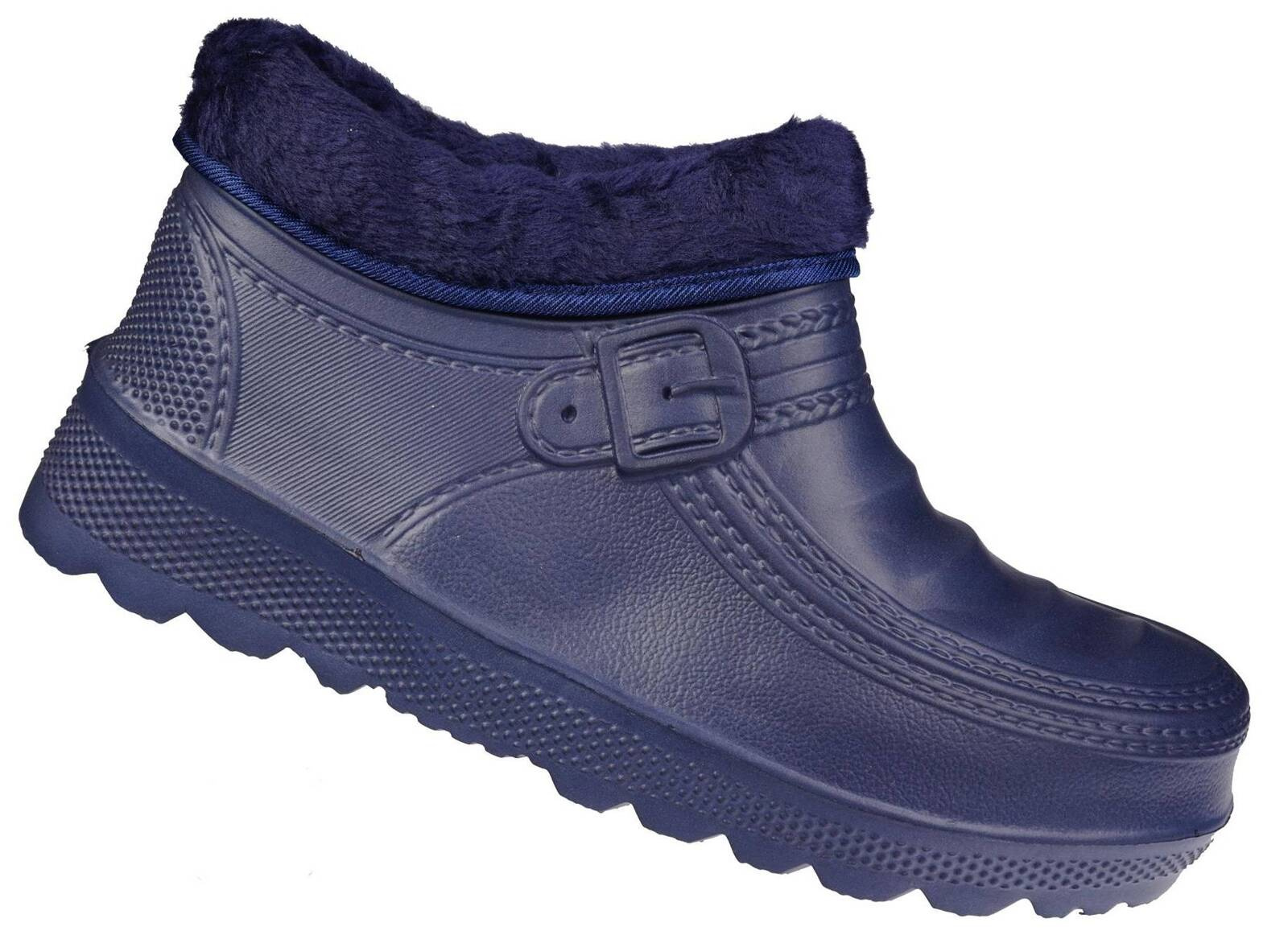 Ocieplane kalosze piankowe Lano w kolorze grantowym z miękkim futerkiem. Wykonane z bardzo lekkiego tworzywa piankowego EVA, które jest odporne na zagniecenia czy otarcia oraz nie przepuszcza wody. Miękkie futro wewnątrz dba o poczucie ciepła nawet podczas chłodnych dni. Bieżniki w podeszwie zapobiegają ślizganiu i odpowiada za odpowiednią przyczepność kalosza do podłoża. Uniwersalna, ciemna kolorystyka oraz materiał z jakiego został wykonany ten model sprawia że będzie go łatwo czyścić. Kalosze za kostkę są wsuwane co usprawnia ich zakładanie i ściąganie. Dodatkową zaletą jest ich mała waga - obuwie jest bardzo lekkie. Połącznie wszystkich tych cech sprawia że kalosze są wygodne i bardzo praktyczne. Ocieplane kalosze są idealną propozycją nie tylko na sezon jesienny ale również zimowy.