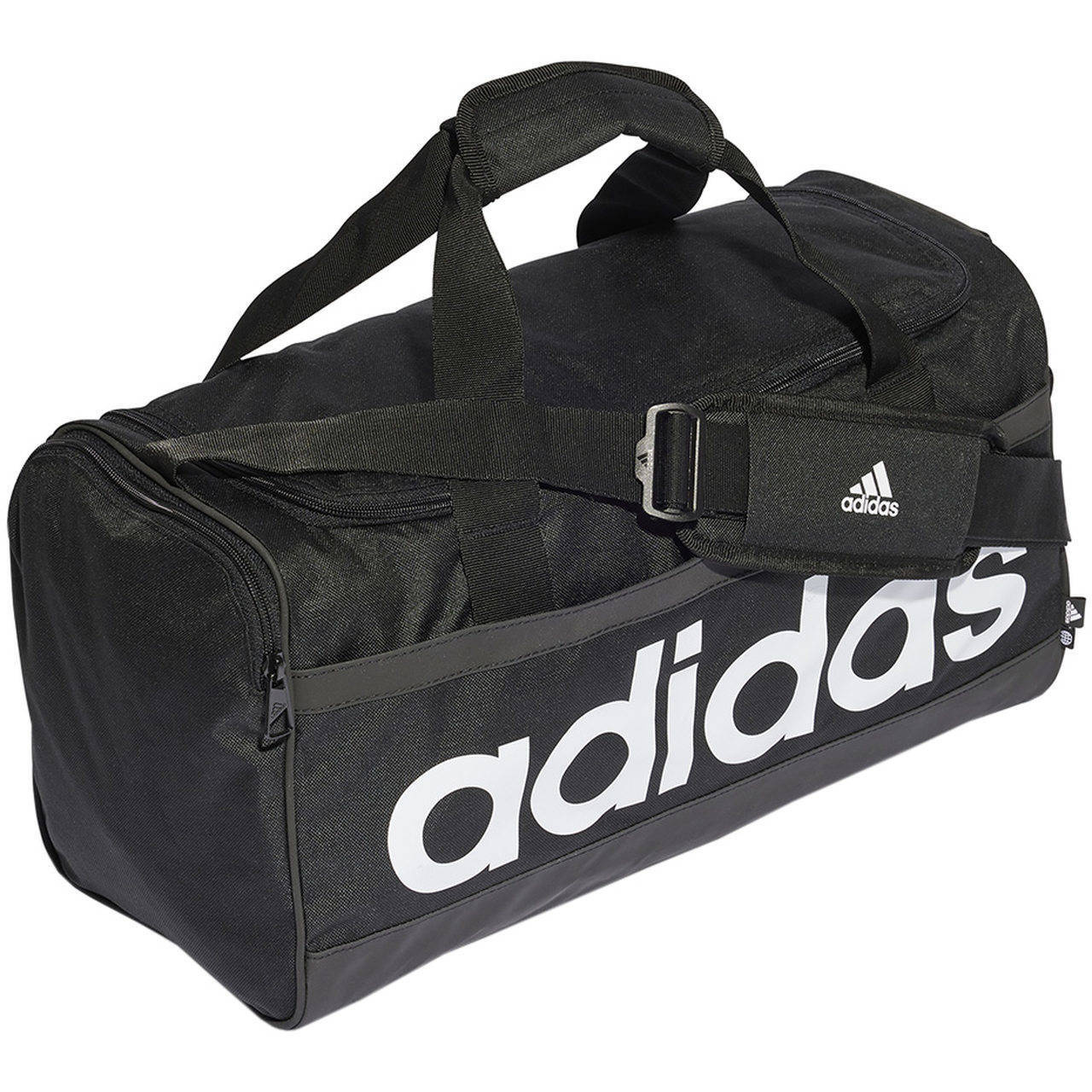 - Czarna torba Adidas z poliestru z recyklingu z pojemną komorą główną. Wiele kieszeni i przegród i oddzielone miejsce na buty pozwala na świetną organizację przedmiotów. Torba idealna na wyjazdy czy treningi.