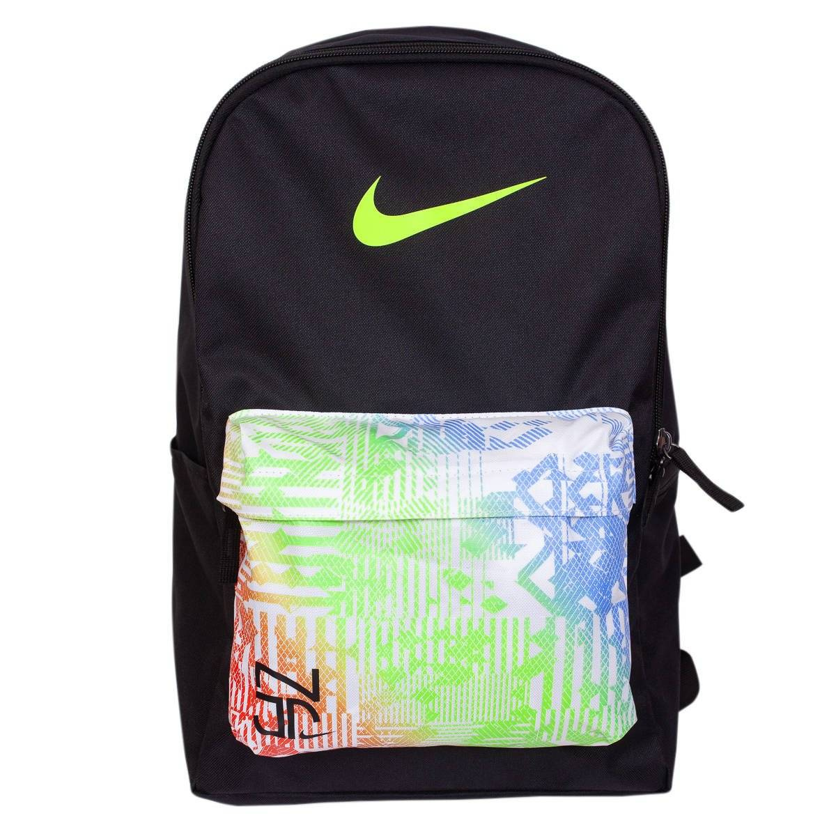 Dziecięcy plecak firmy Nike z kolekcji Neymar Jr sprawdzi się idealnie zarówno dla poszukiwaczy przygód, wędrowców, ale i jako element wyposażenia szkolnego. Swój uniwersalny charakter zawdzięcza między innymi wytrzymałej konstrukcji, wykonanej w 100% z poliestru w czarnym kolorze i pakowności wynoszącej 18 litrów. Model posiada główną komorę zapinaną na dwukierunkowy zamek z dodatkową przegrodą mieszczącą laptopa do 15 cali oraz wielobarwną przednią kieszeń. Po bokach zostały umieszczone otwarte kieszenie boczne. Wyściełane i regulowane paski na ramiona oraz wzmocniony panel tylny, który stabilizują plecak i zapobiegają szybkiemu męczeniu się pleców. Górny uchwyt pozwala na swobodne przenoszenie. Logo firmy Swoosh zostało umieszczone na froncie. Produkt jest nowy i posiada oryginalne metki.