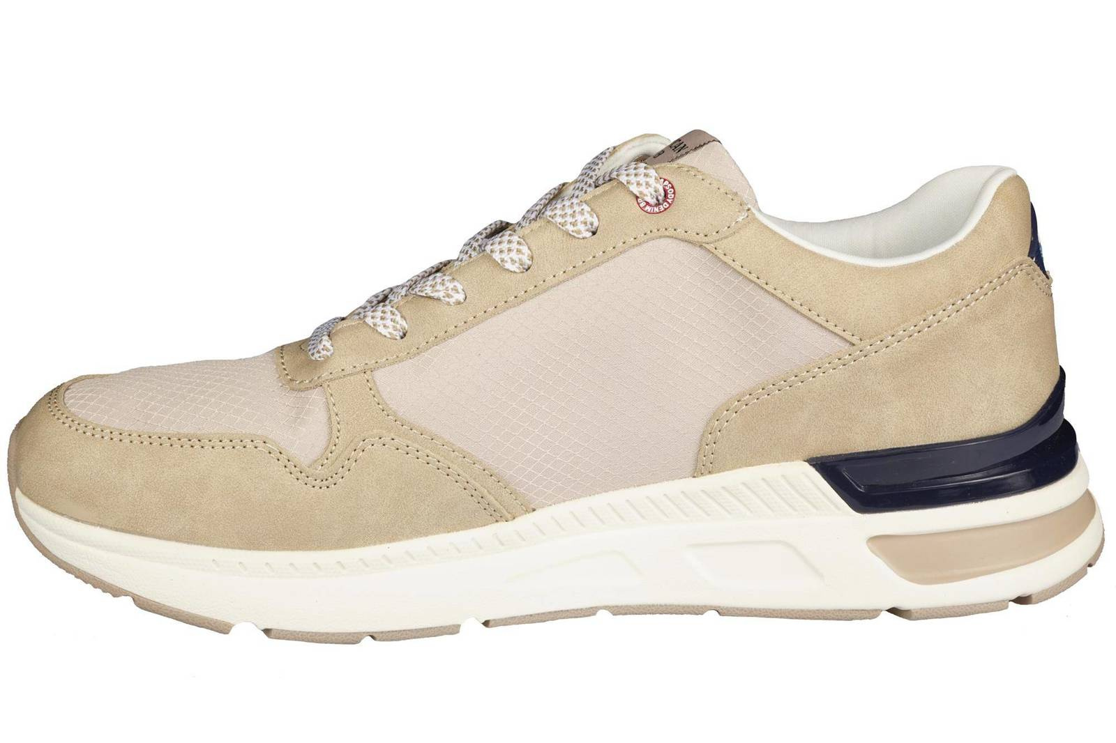 - Męskie buty sportowe Firmy American Club w kolorze beżowym. Posiadają siateczkę na przodzie, która zapewnia dobrą wentylację i zapobiega poceniu się stopy. Obuwie jest wiązane, lekkie, posiada sztywny zapiętek co gwarantuje wygodę.
