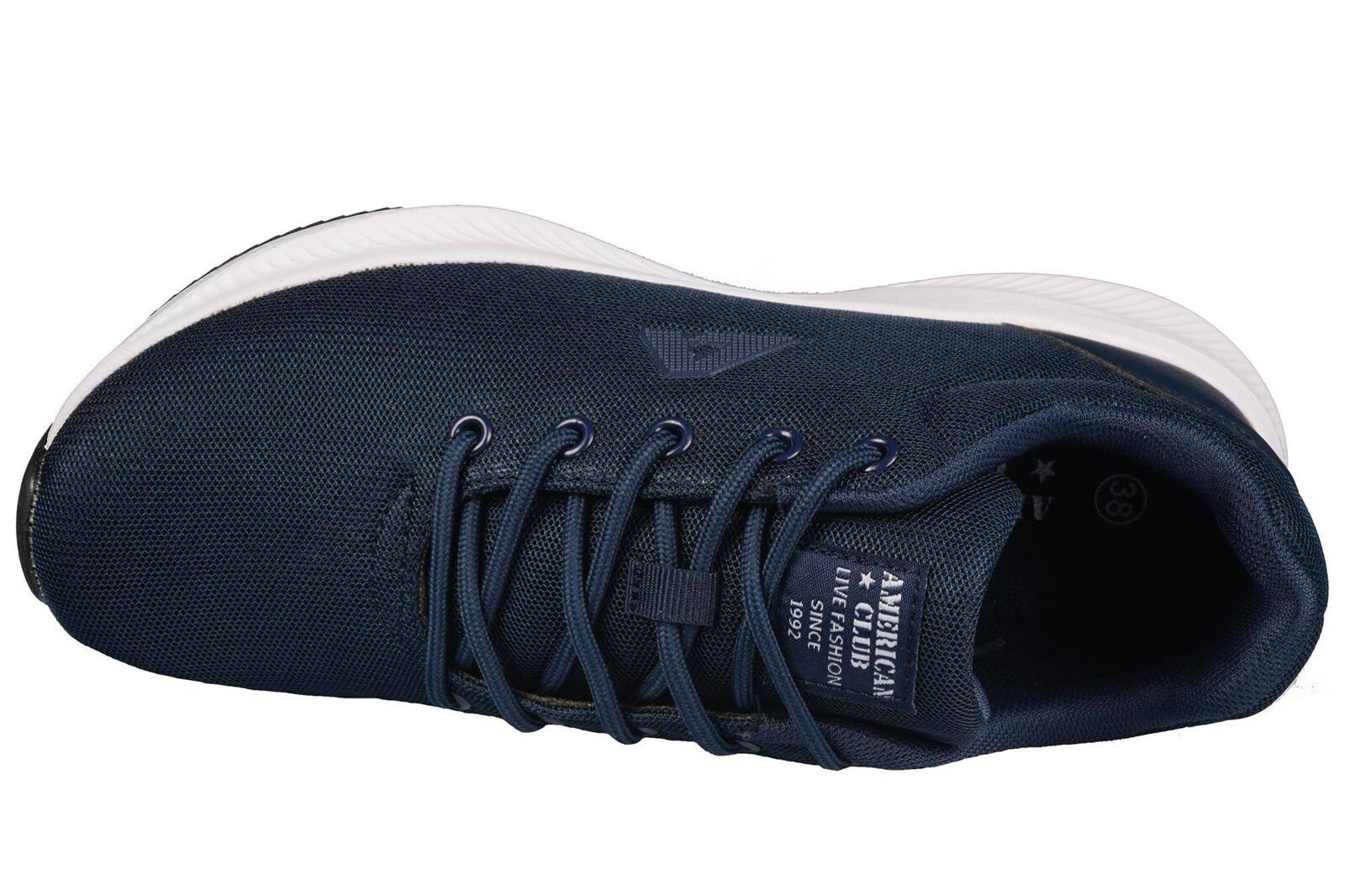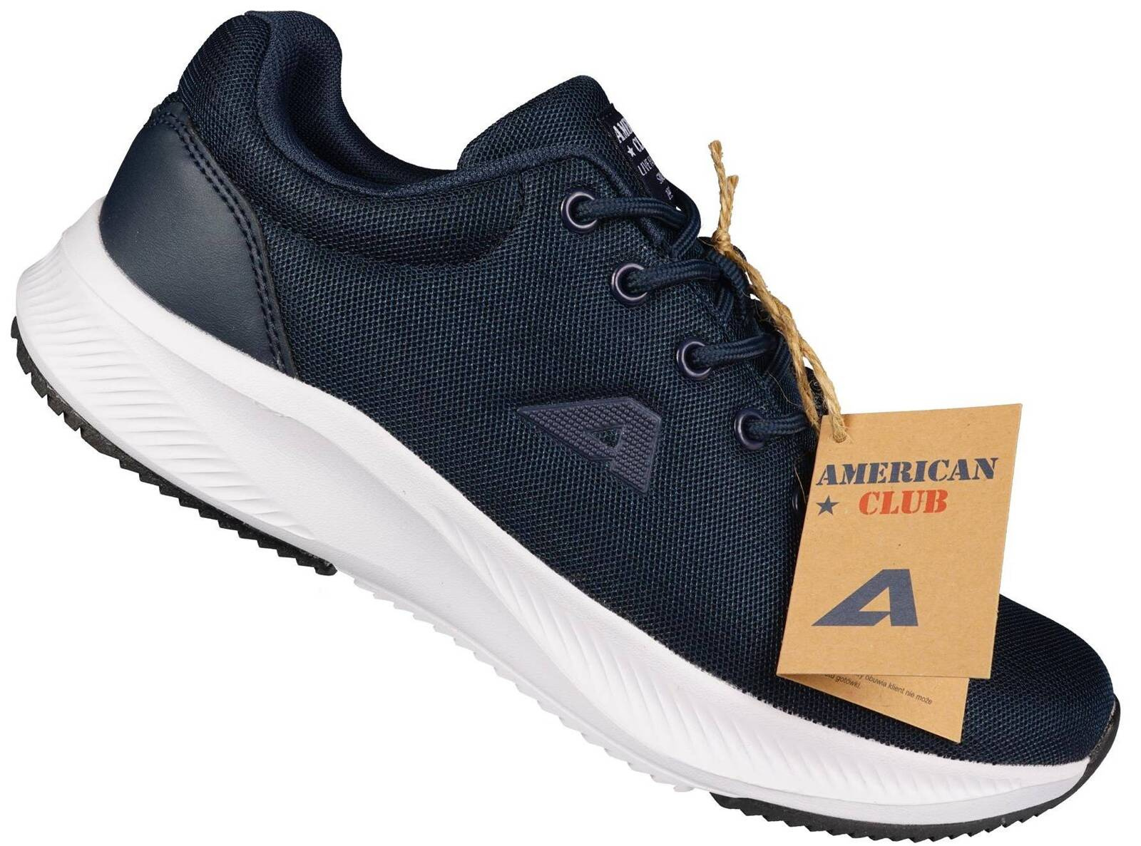 - Młodziezowe buty sportowe Firmy American Club w kolorze granatowym. Stylowe wygodne i lekkie obuwie, jest wiązane, posiada sztywny zapiętek. Buty mają piankową podeszwę z gumowymi wstawkami co zapewnia dobrą przyczepność do podłoża.
