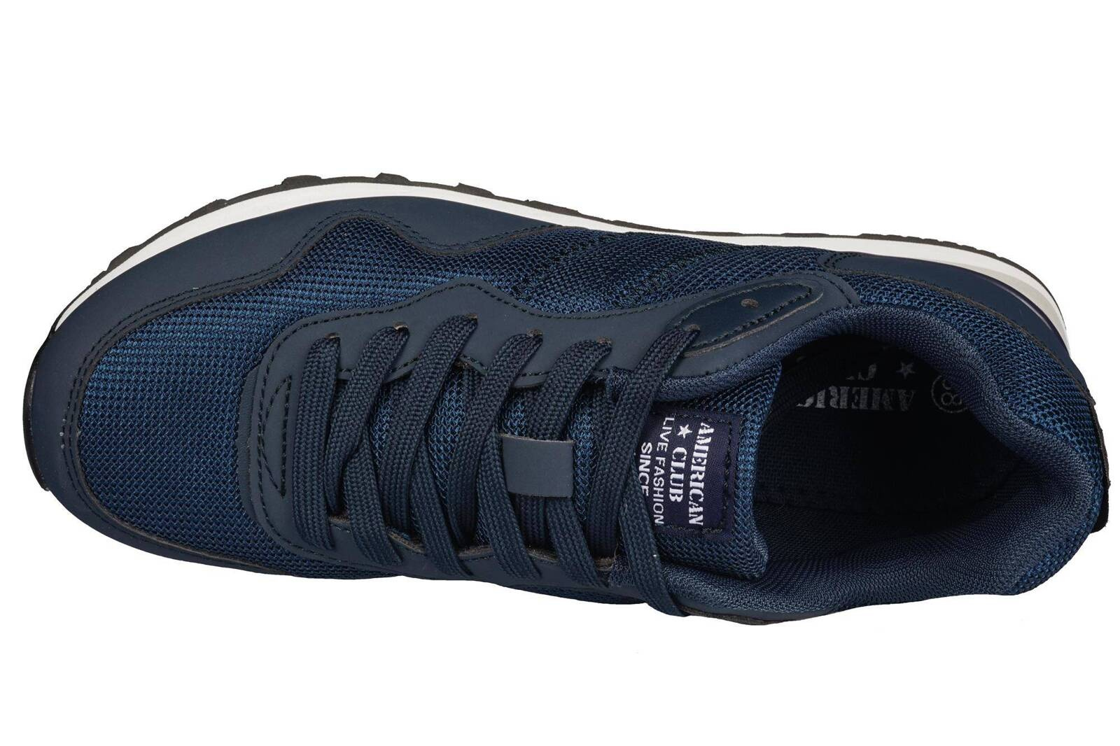 - Młodzieżowe buty sportowe Firmy American Club w kolorze granatowym. Stylowe wygodne i lekkie obuwie, jest wiązane, posiada sztywny zapiętek. Buty mają piankową podeszwę z gumowym spodem co zapewnia dobrą przyczepność do podłoża.