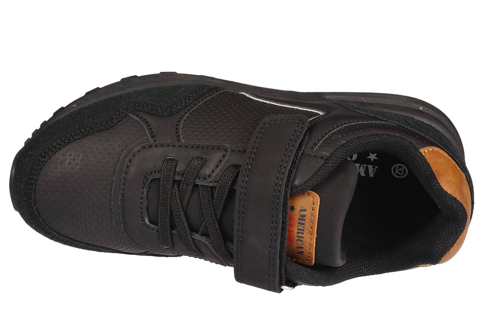 • Dziecięce buty sportowe Firmy American Club w kolorze czarnym. Stylowe wygodne i lekkie obuwie, jest zapinane na rzepy, posiada sztywny zapiętek. Buty mają piankową podeszwę z gumowym spodem co zapewnia dobrą przyczepność do podłoża.