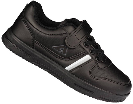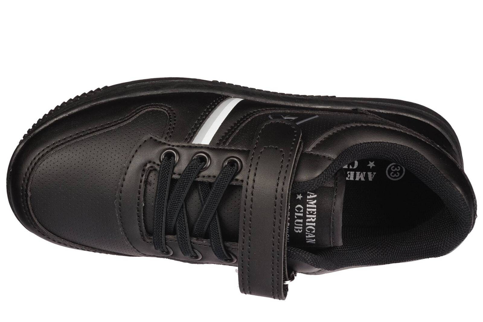 - Dziecięce buty sportowe Firmy American Club w kolorze czarnym. Stylowe wygodne i lekkie obuwie, jest zapinane na rzepy, posiada sztywny zapiętek. Buty mają piankową podeszwę z gumowym spodem co zapewnia dobrą przyczepność do podłoża.