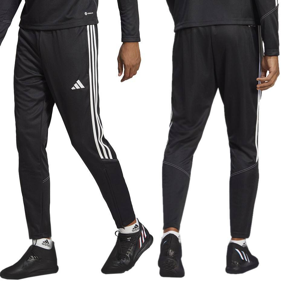 - Męskie spodnie dresowe Tiro 23 czarne. 100% poliestru pochodzącego z recyklingu. Kieszenie oraz dolne części nogawek zapinane na zamki. Krój i kultowy wygląd sprawiają że dresy pasują pod trening czy wypad na miasto.