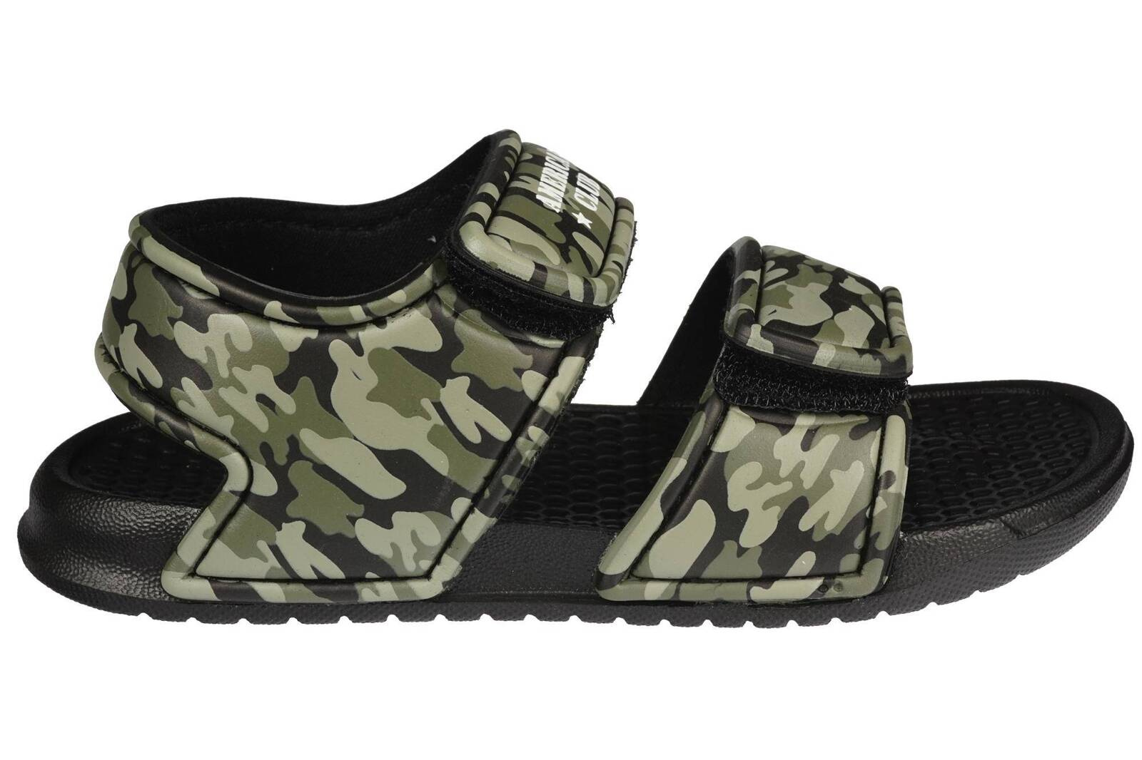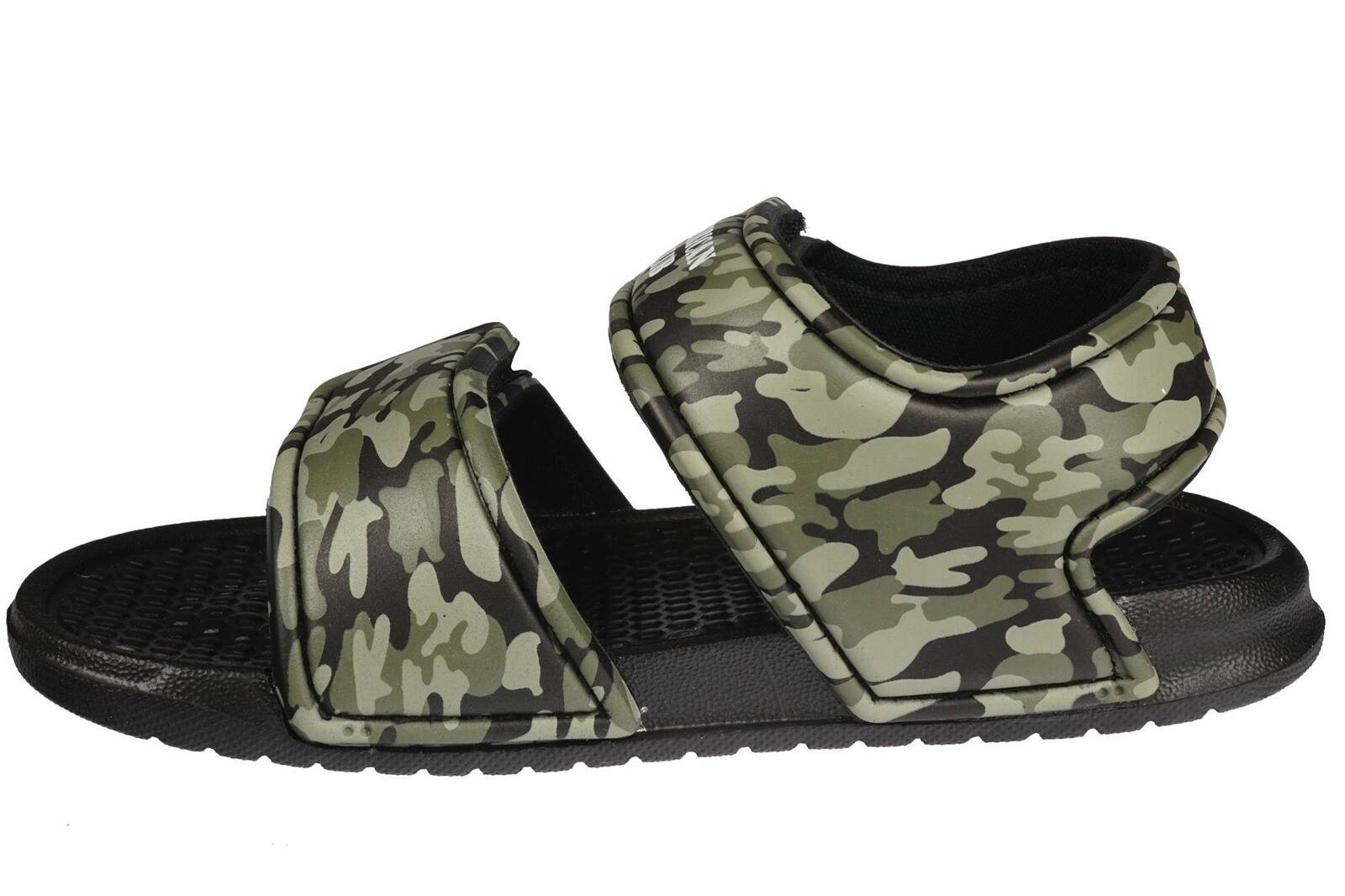 Dziecięce klapki basenowe firmy American Club w kolorze zielonym. Wykonane zostały na wzór sandałów w bardzo ciekawym i ładnym stylu w całości z pianki, co sprawia że są one niesamowicie lekkie i przyjazne dla skóry. Model ten to doskonały wybór obuwia letniego do zabawy na plaży lub do użytku codziennego. Ich piankowa, bieżnikowana podeszwa zapewni stabilność i zapobiegnie ślizganiu a zapięcie na rzep umożliwi na indywidualne dopasowanie ich do stopy oraz zapewni wygodę w użytkowaniu. Wzór moro nadaje im chłopięcego charakteru.