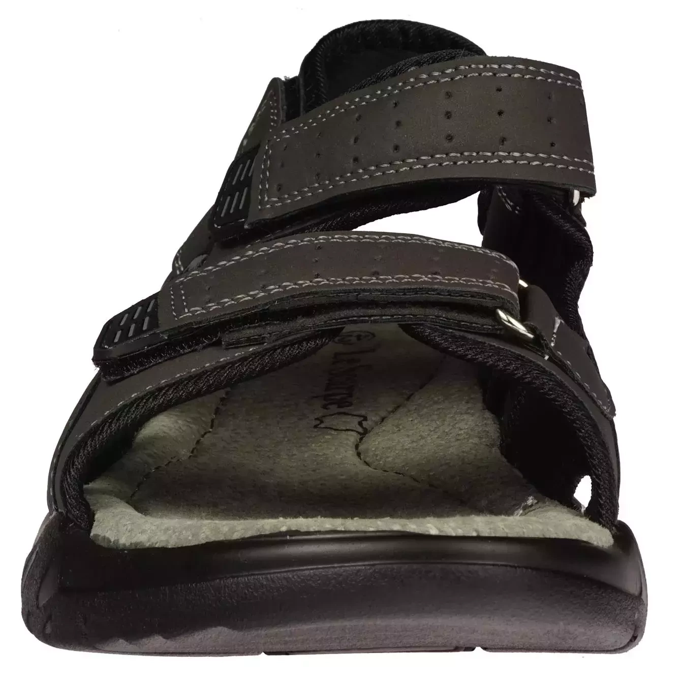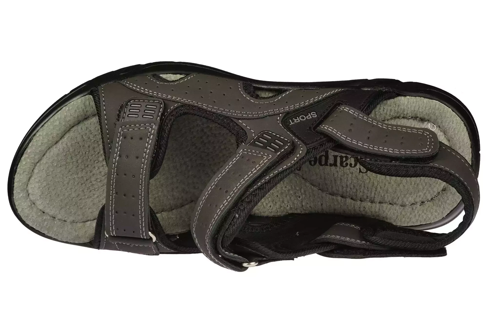 - Sandały męskie firmy Le Scarpe w kolorze szarym zapinane na rzep. Miękka, skórzana wkładka, odpowiada za komfort i prawidłowe ułożenie stopy podczas chodzenia oraz zapobiega nadmiernemu poceniu się. Gumowe podeszwy zagwarantują stabilność.