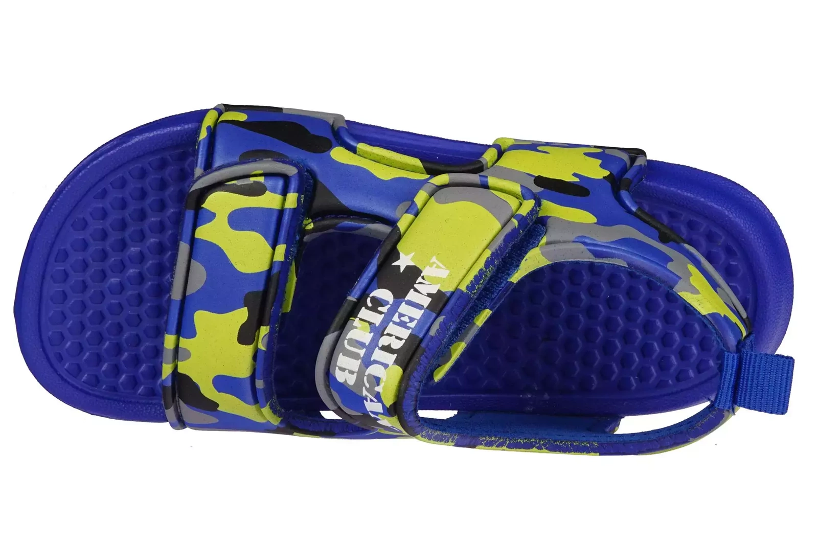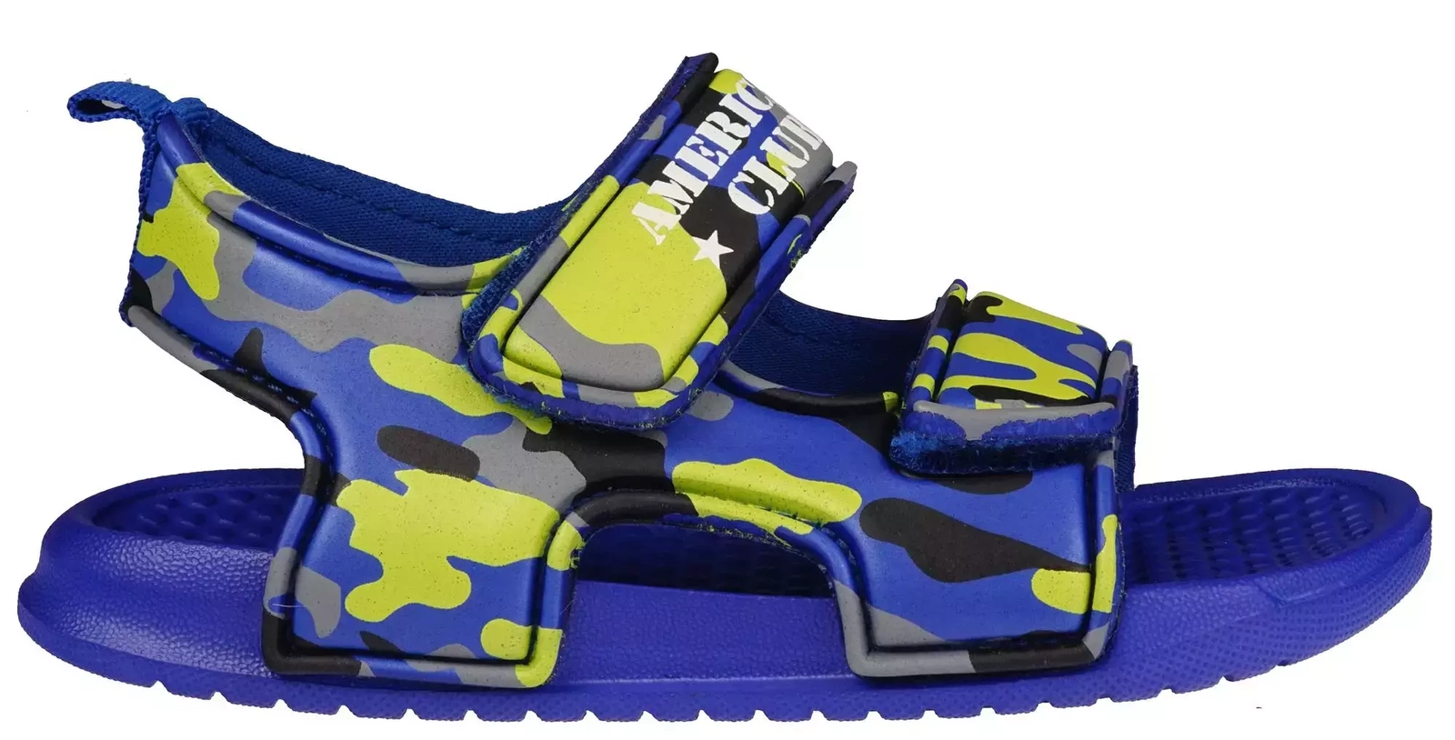 - Dziecięce klapki basenowe firmy American Club w kolorze niebieskim. Wykonane na wzór sandałów w bardzo ciekawym i ładnym stylu w całości z pianki, co sprawia że są one niesamowicie lekkie i wygodne. Zapięcie na rzep zapewnia mega dopasowanie do stopy.