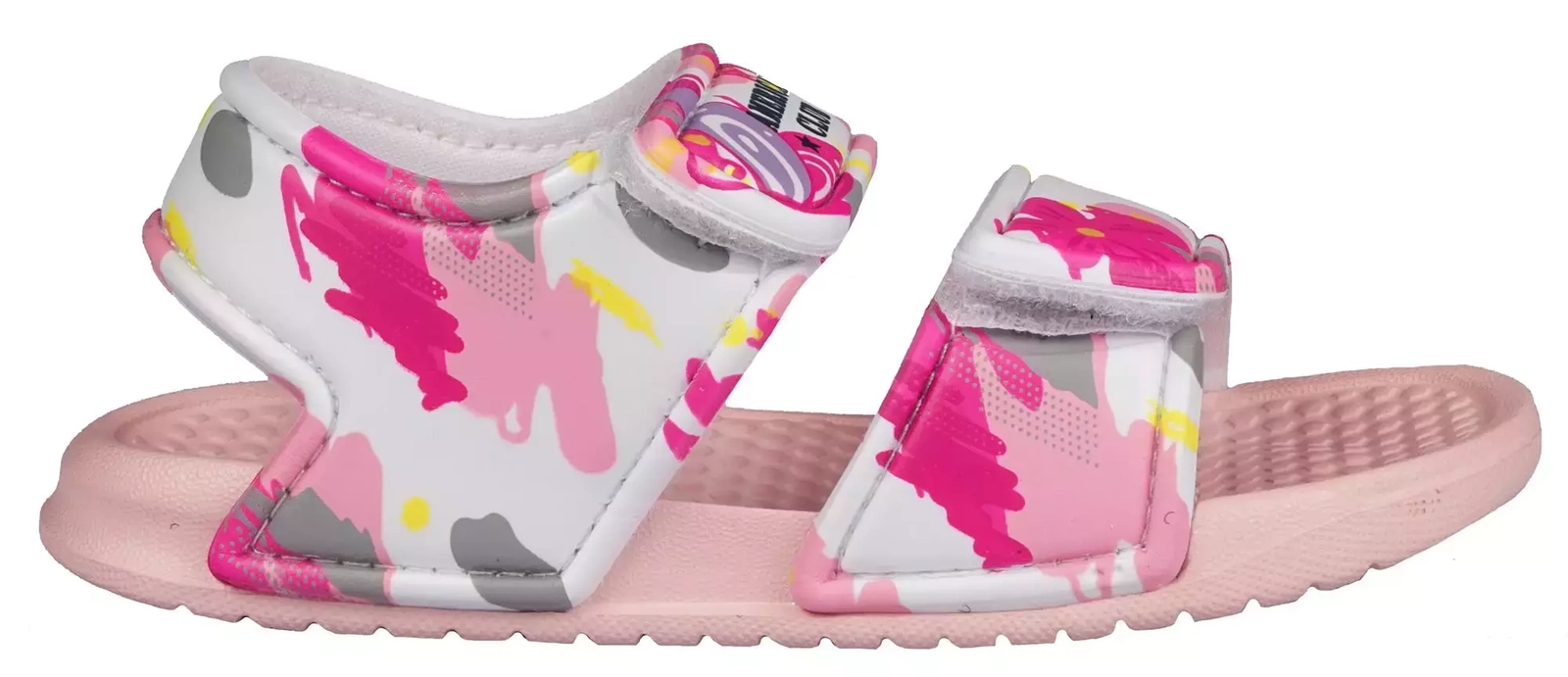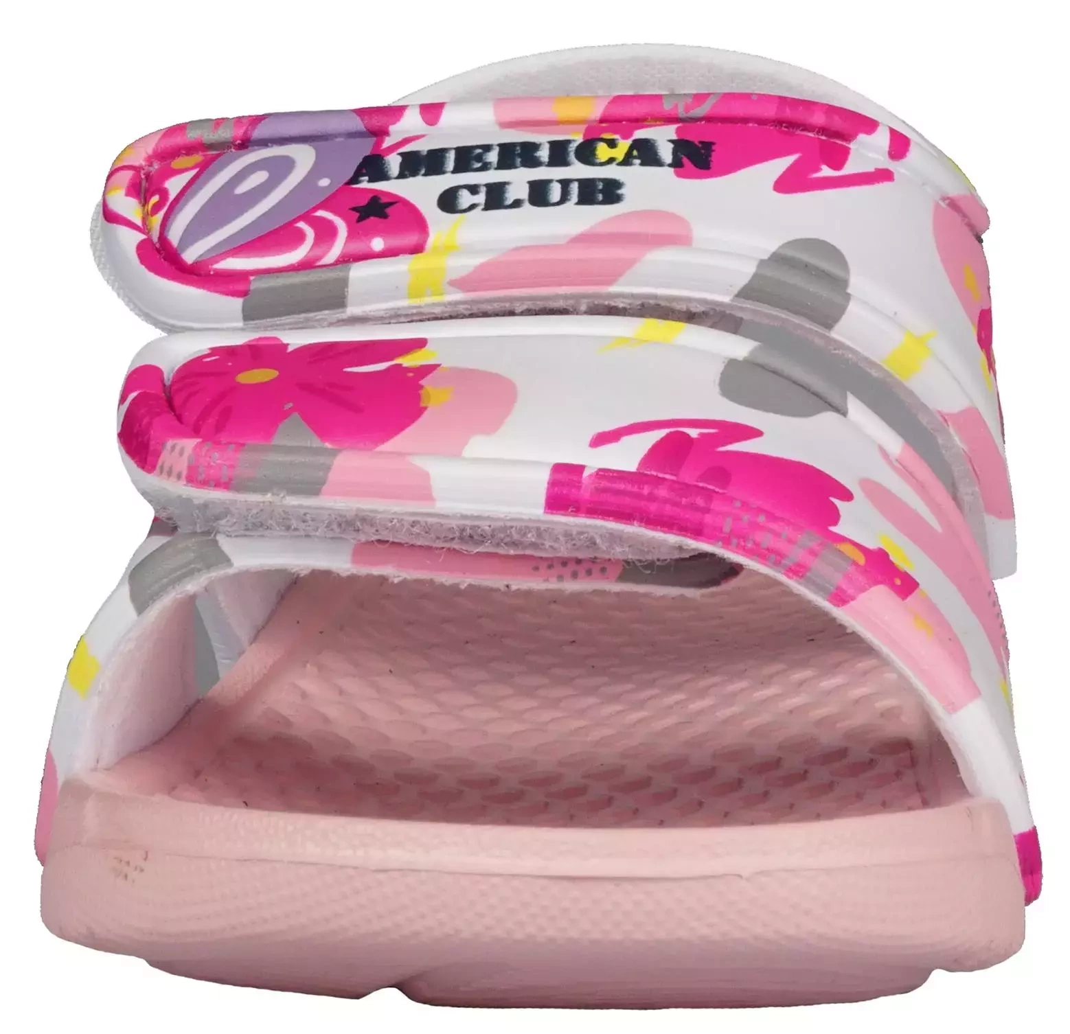 - Dziecięce klapki basenowe firmy American Club w kolorze różowym. Wykonane na wzór sandałów w bardzo ciekawym i ładnym stylu w całości z pianki, co sprawia że są one niesamowicie lekkie i wygodne. Zapięcie na rzep zapewnia mega dopasowanie do stopy.
