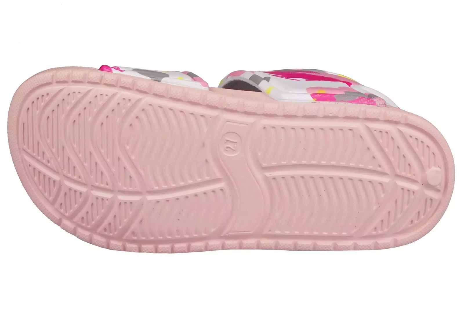 Dziecięce klapki basenowe firmy American Club w kolorze różowym. Wykonane zostały na wzór sandałów w bardzo ciekawym i ładnym stylu w całości z pianki, co sprawia że są one niesamowicie lekkie i przyjazne dla skóry. Model ten to doskonały wybór obuwia letniego do zabawy na plaży lub do użytku codziennego. Ich piankowa, bieżnikowana podeszwa zapewni stabilność i zapobiegnie ślizganiu a zapięcie na rzep umożliwi na indywidualne dopasowanie ich do stopy oraz zapewni wygodę w użytkowaniu.