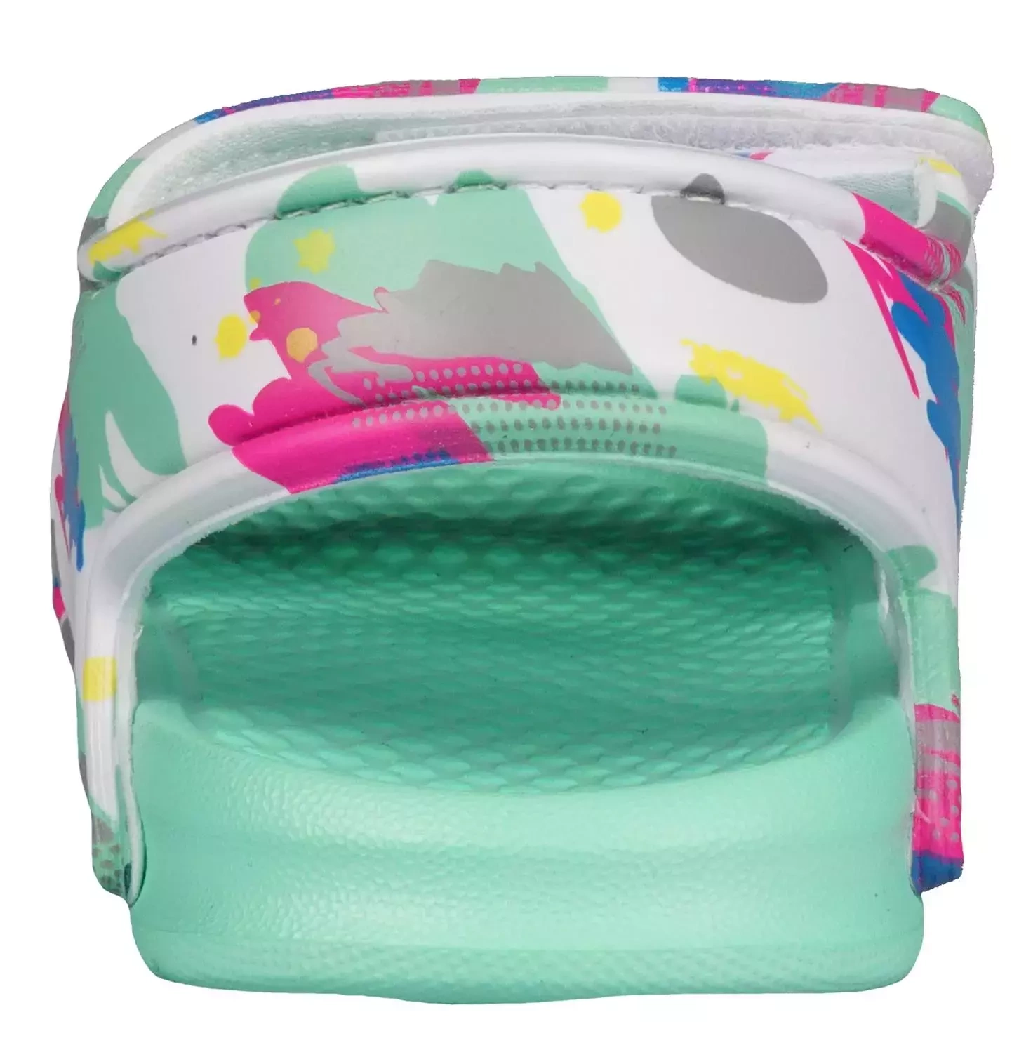 Dziecięce klapki basenowe firmy American Club w kolorze turkusowym. Wykonane zostały na wzór sandałów w bardzo ciekawym i ładnym stylu w całości z pianki, co sprawia że są one niesamowicie lekkie i przyjazne dla skóry. Model ten to doskonały wybór obuwia letniego do zabawy na plaży lub do użytku codziennego. Ich piankowa, bieżnikowana podeszwa zapewni stabilność i zapobiegnie ślizganiu a zapięcie na rzep umożliwi na indywidualne dopasowanie ich do stopy oraz zapewni wygodę w użytkowaniu.