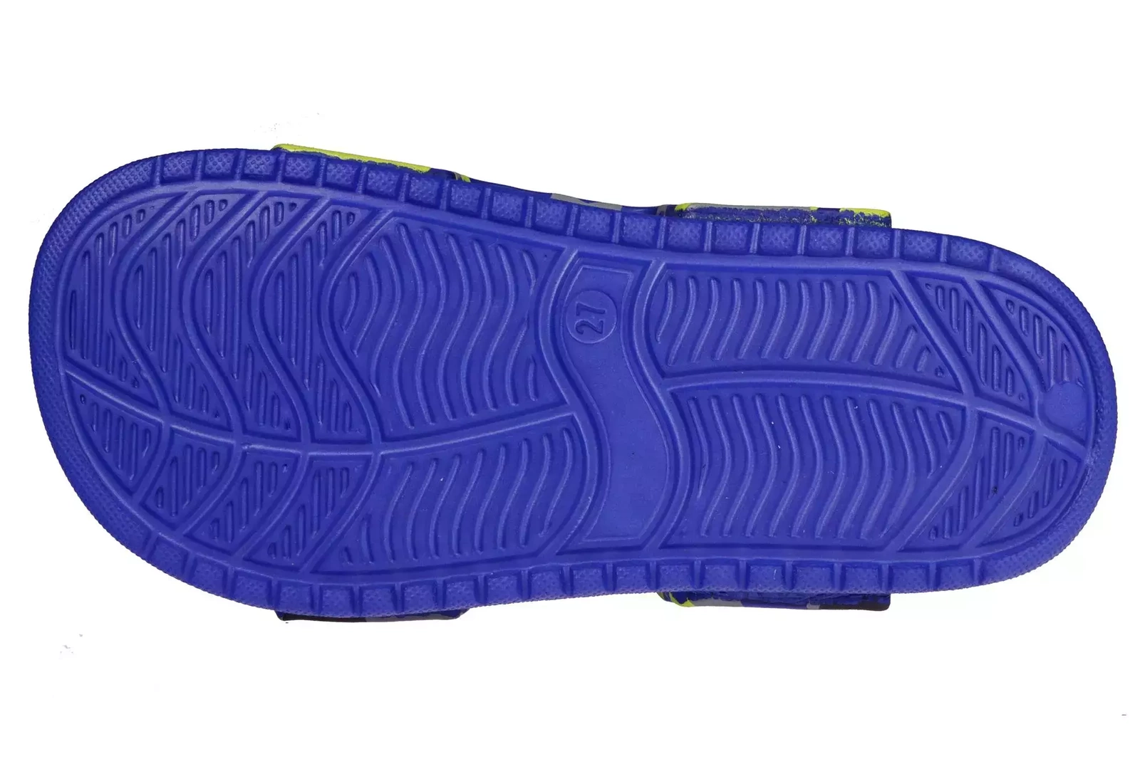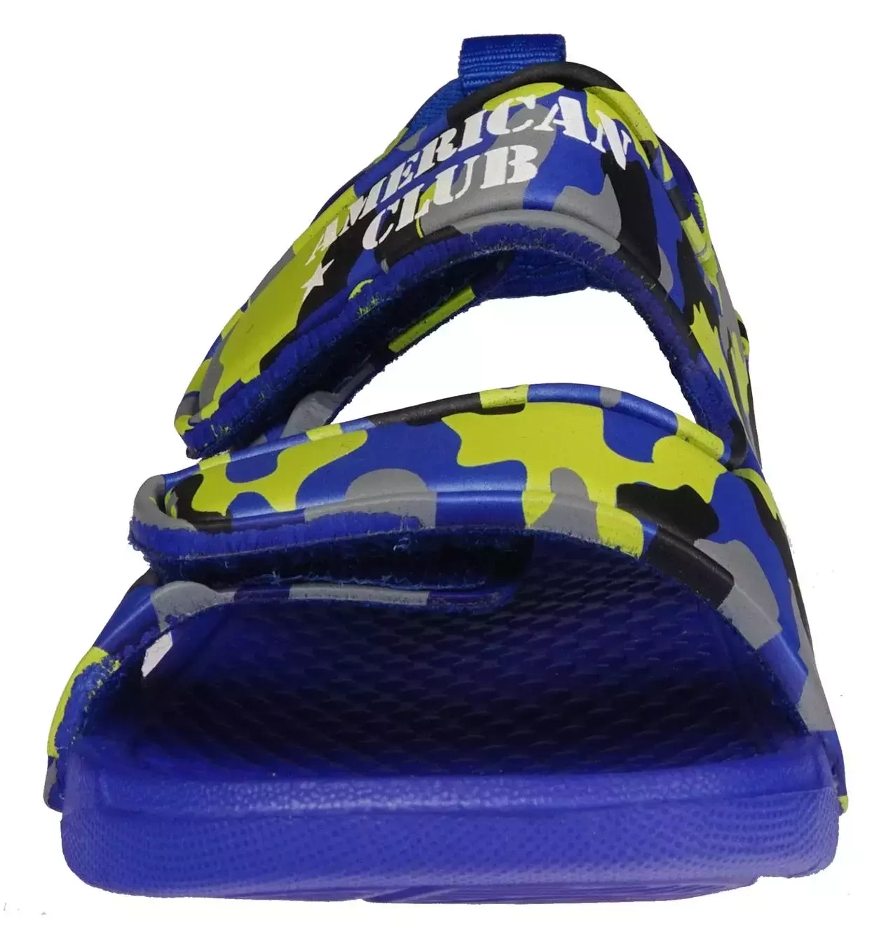 - Dziecięce klapki basenowe firmy American Club w kolorze niebieskim. Wykonane na wzór sandałów w bardzo ciekawym i ładnym stylu w całości z pianki, co sprawia że są one niesamowicie lekkie i wygodne. Zapięcie na rzep zapewnia mega dopasowanie do stopy.