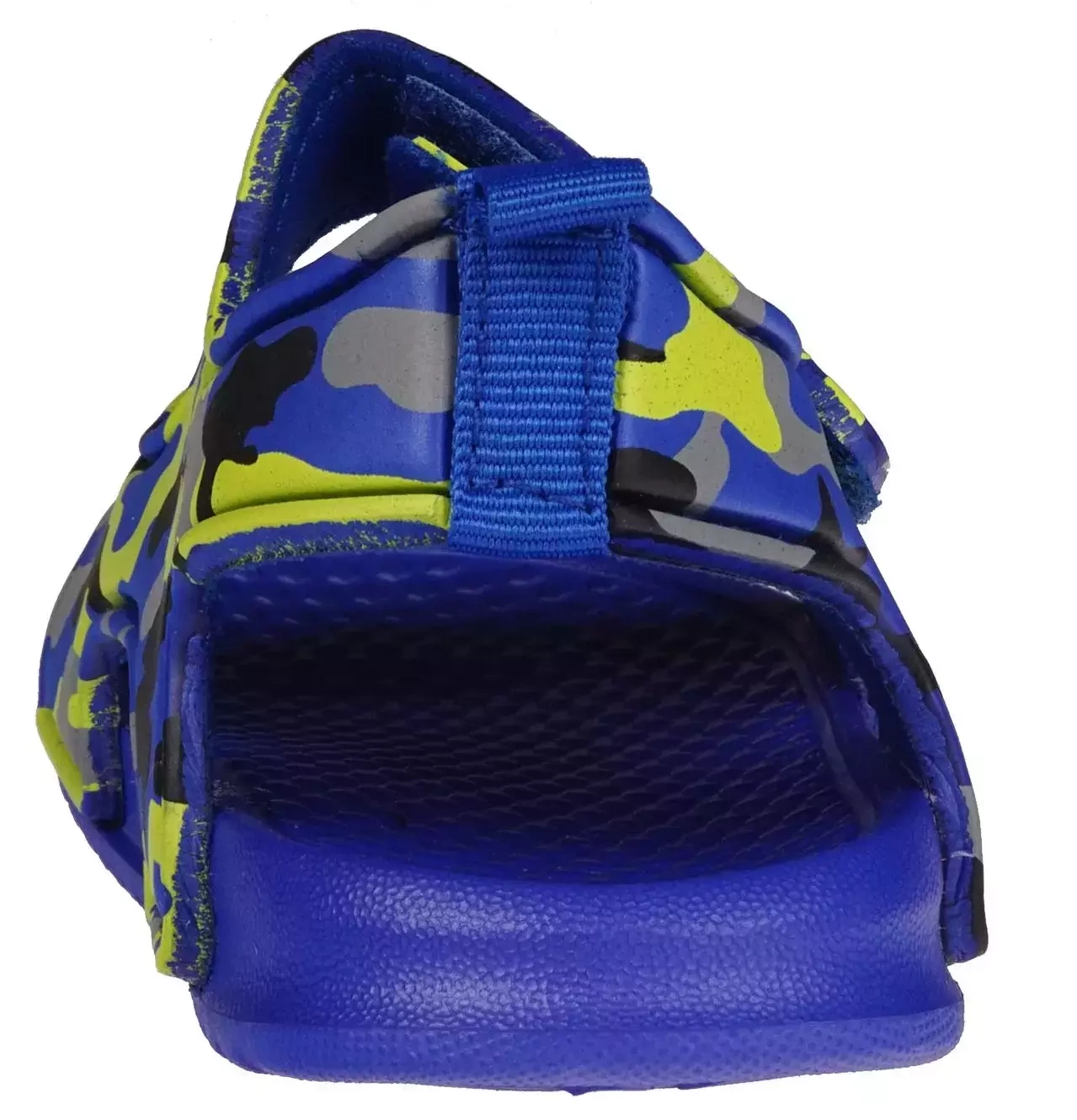 Dziecięce klapki basenowe firmy American Club w kolorze niebieskim. Wykonane zostały na wzór sandałów w bardzo ciekawym i ładnym stylu w całości z pianki, co sprawia że są one niesamowicie lekkie i przyjazne dla skóry. Model ten to doskonały wybór obuwia letniego do zabawy na plaży lub do użytku codziennego. Ich piankowa, bieżnikowana podeszwa zapewni stabilność i zapobiegnie ślizganiu a zapięcie na rzep umożliwi na indywidualne dopasowanie ich do stopy oraz zapewni wygodę w użytkowaniu.