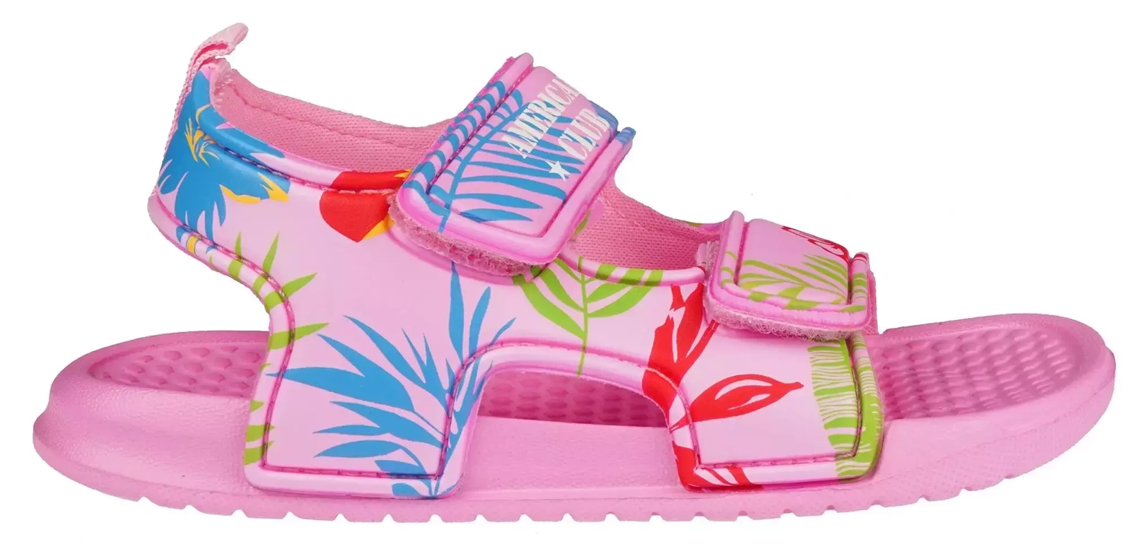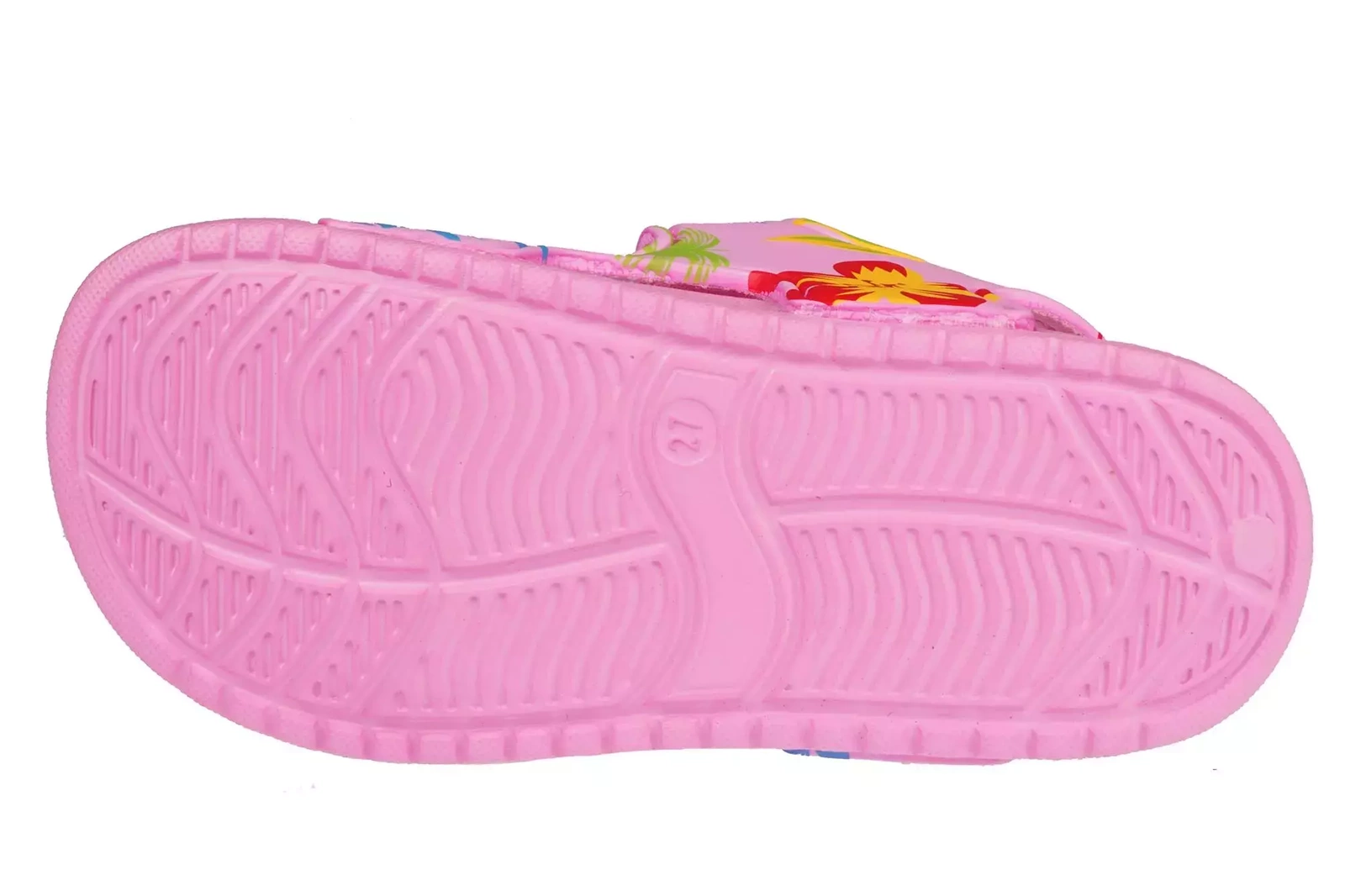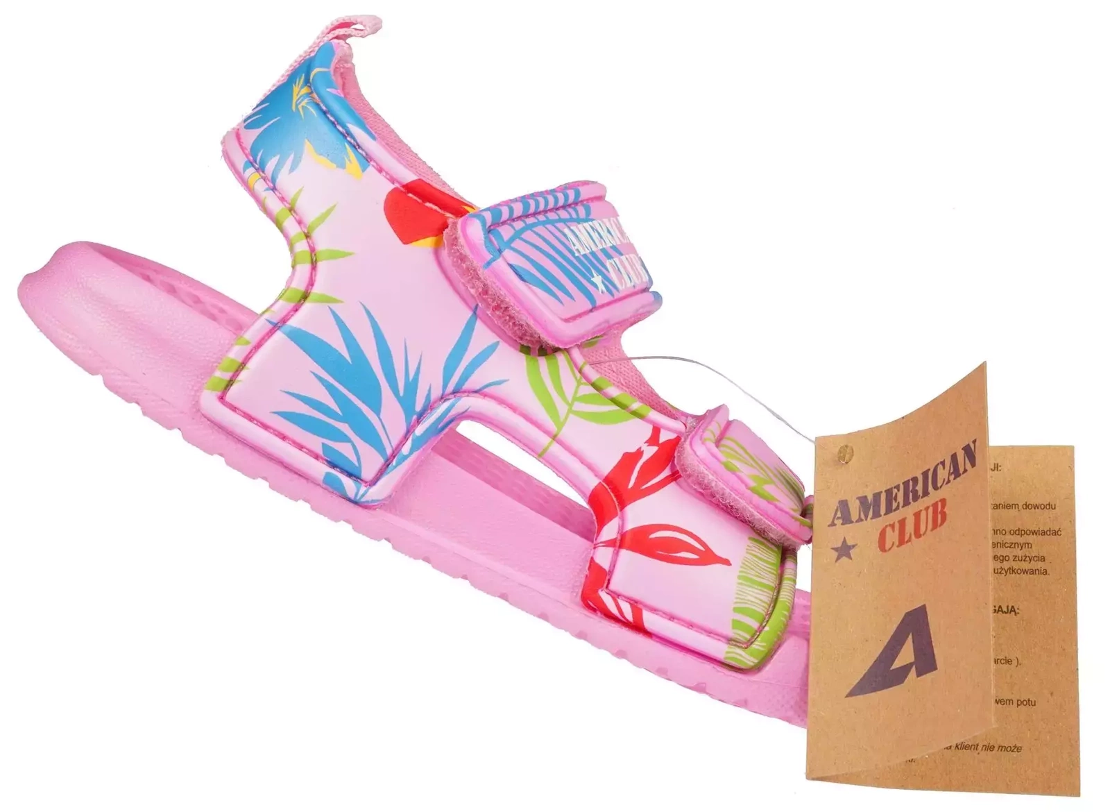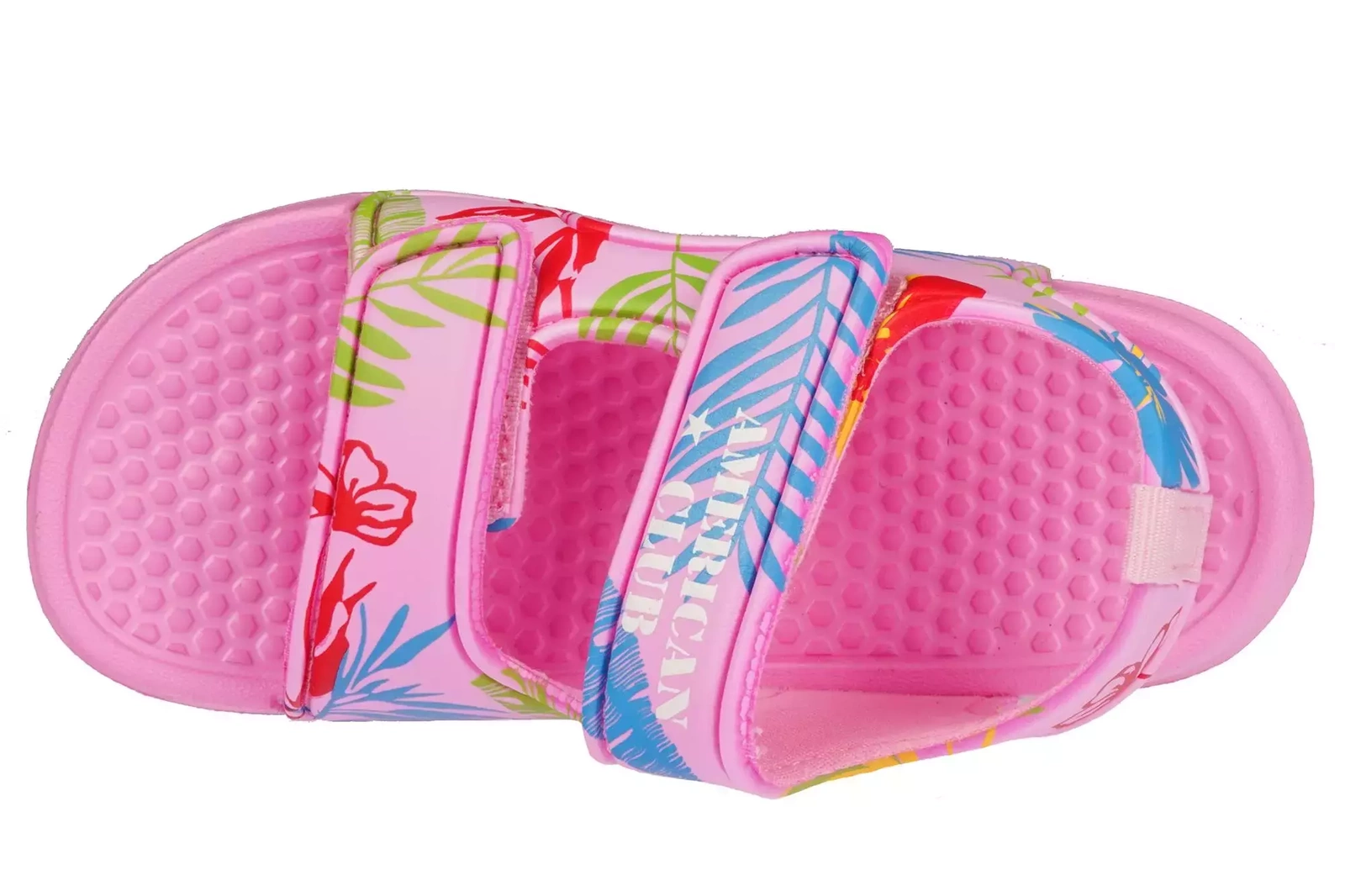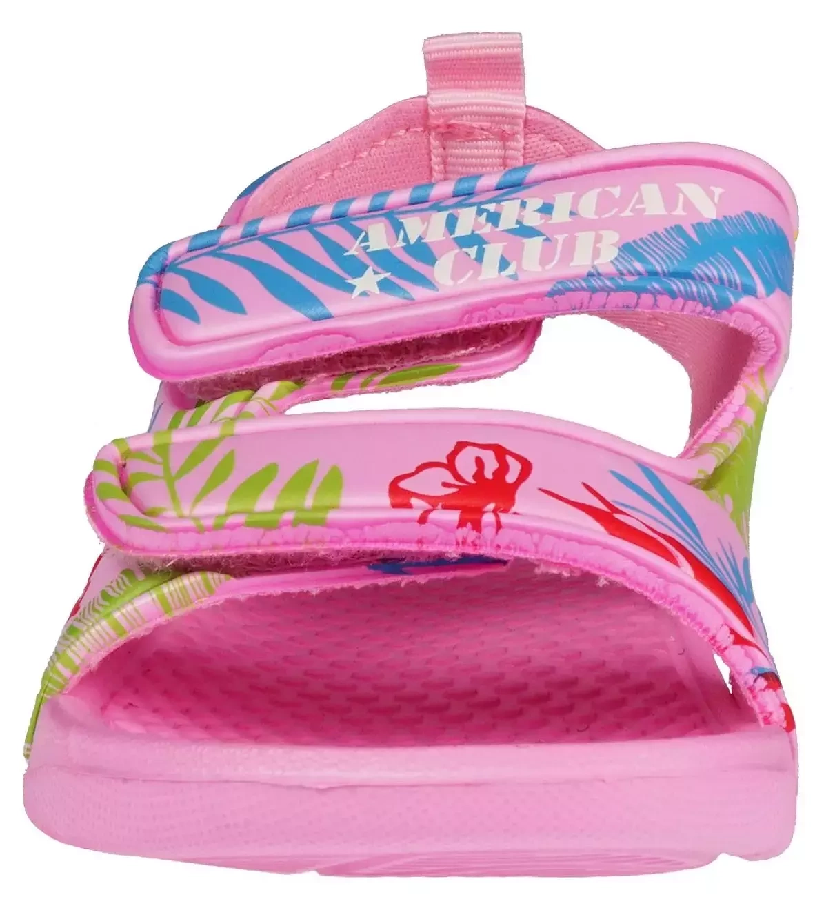 - Dziecięce klapki basenowe firmy American Club w kolorze różowym. Wykonane zostały na wzór sandałów w bardzo ciekawym i ładnym stylu w całości z pianki, co sprawia że są one niesamowicie lekkie i wygodne. Wzór moro nadaje im chłopięcego charakteru.