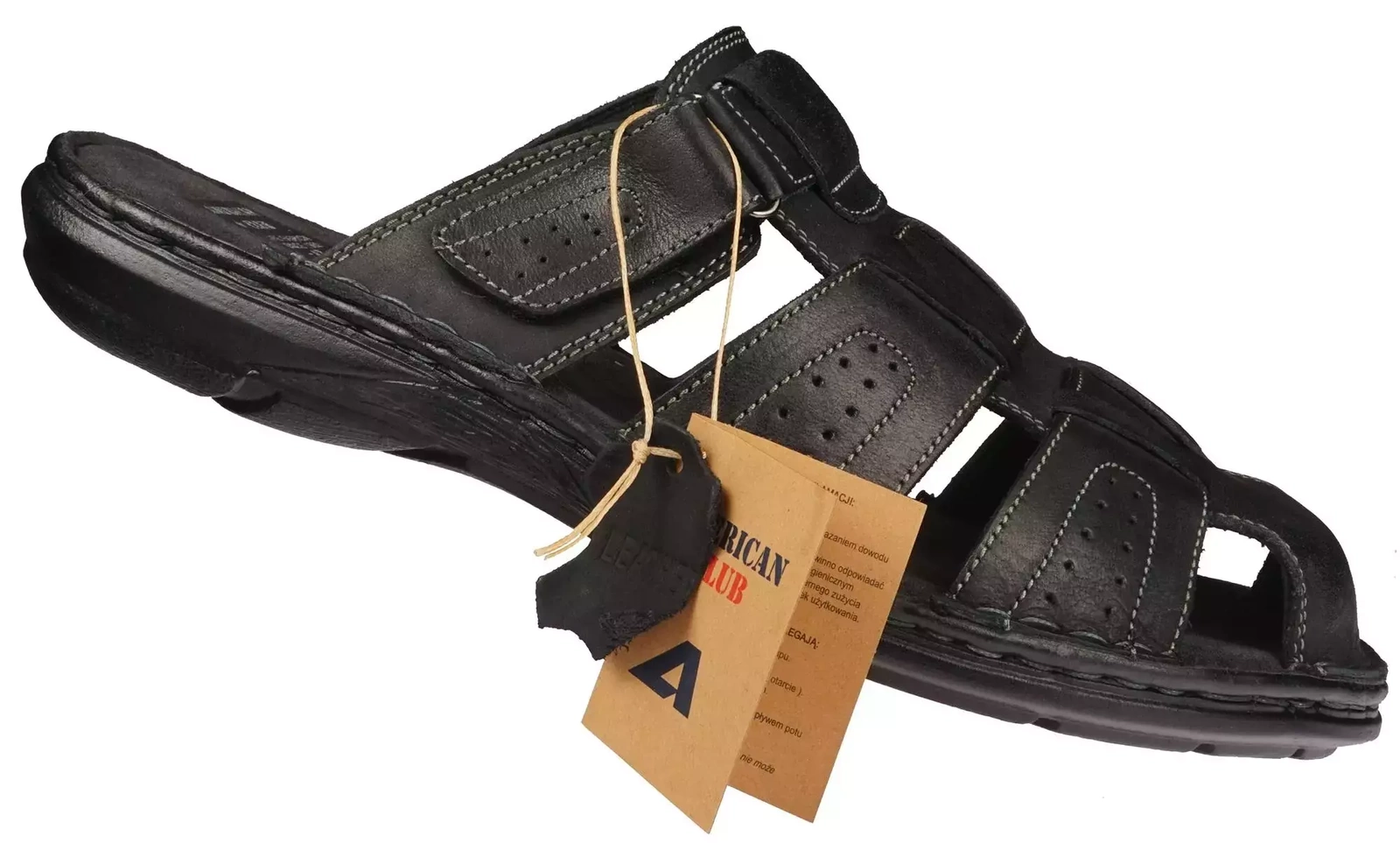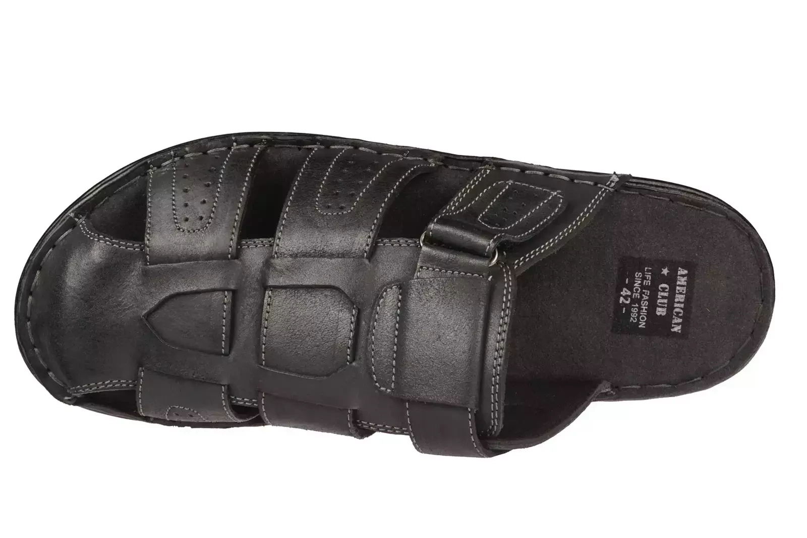 - Męskie klapki skórzane American Club MCY-82BL. Zaprojektowane zostały z myślą o osobach ceniących sobie wysoki komfort oraz wygodę w połączeniu ze świetnym stylem. Obuwie to jest lekkie, świetnie wykonane a przede wszystkim praktyczne.
