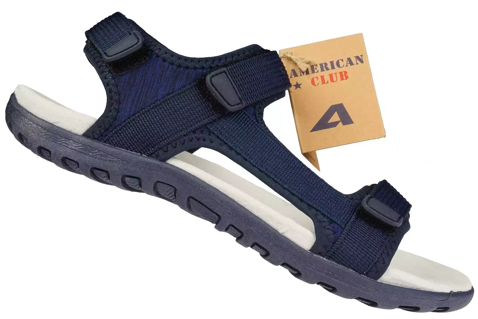 Sandały młodzieżowe firmy American Club w kolorze granatowym zapinane na rzep. Najwyższej jakości materiały użyte do stworzenia tego obuwia zapewnią długotrwałość produktu jak i maksymalne zadowolenie użytkownika. Model ten jest bardzo praktycznym rozwiązaniem dla osób ceniących sobie komfort i wygodę. Miękka, skórzana wkładka, odpowiada za komfort i prawidłowe ułożenie stopy podczas chodzenia oraz zapobiega nadmiernemu poceniu się. Gumowe podeszwy zagwarantują stabilność i zapobiegną poślizgowi. Sandały męskie American Club te będą idealne nie tylko na piesze wycieczki ale również jako obuwie codziennego użytku. Tekstylne wstawki zapewniają wygodę.