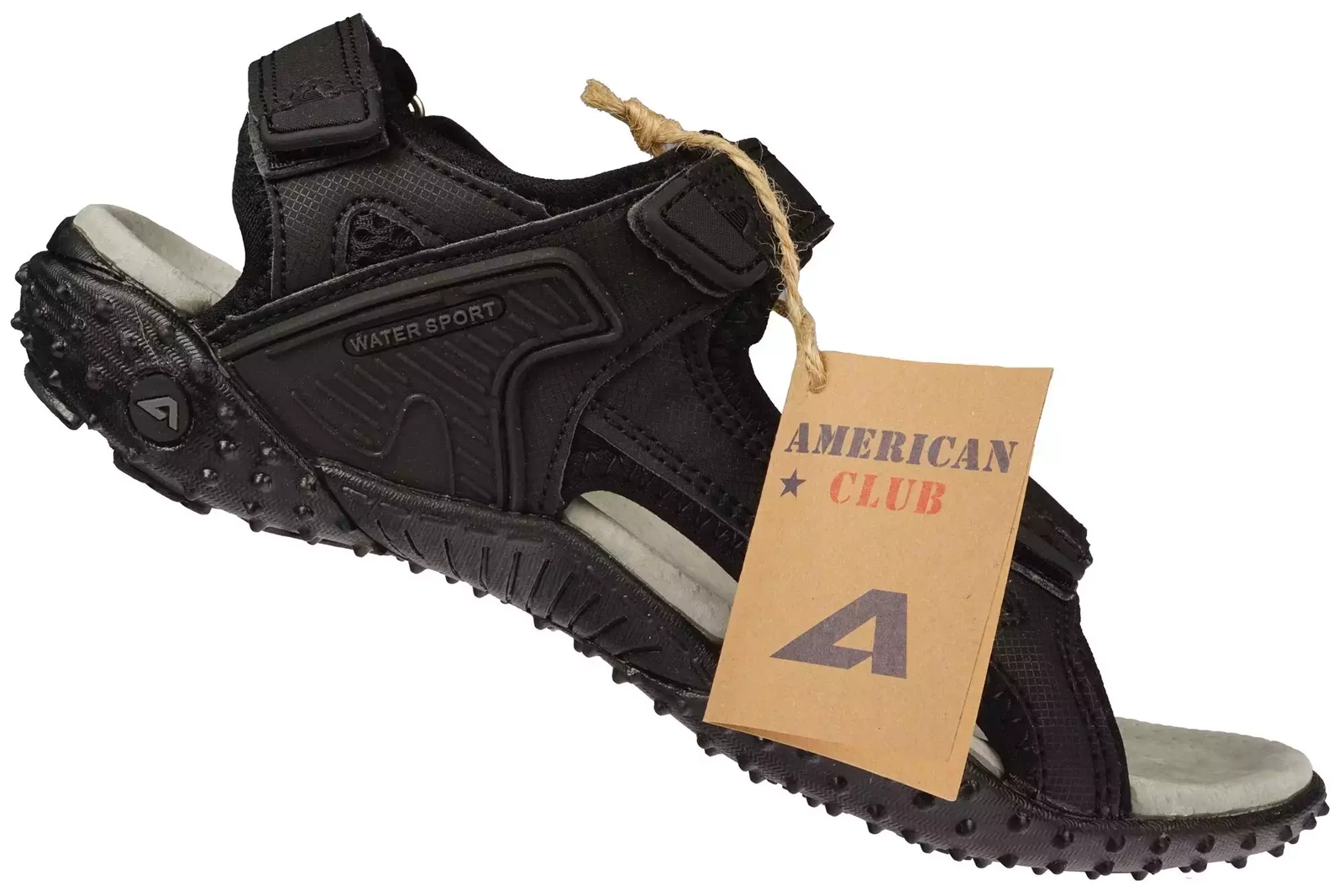 • Sandały młodzieżowe firmy American Club w kolorze czarnym zapinane na rzep. Miękka, skórzana wkładka, odpowiada za komfort i prawidłowe ułożenie stopy podczas chodzenia oraz zapobiega nadmiernemu poceniu się. Gumowe podeszwy zagwarantują stabilność.