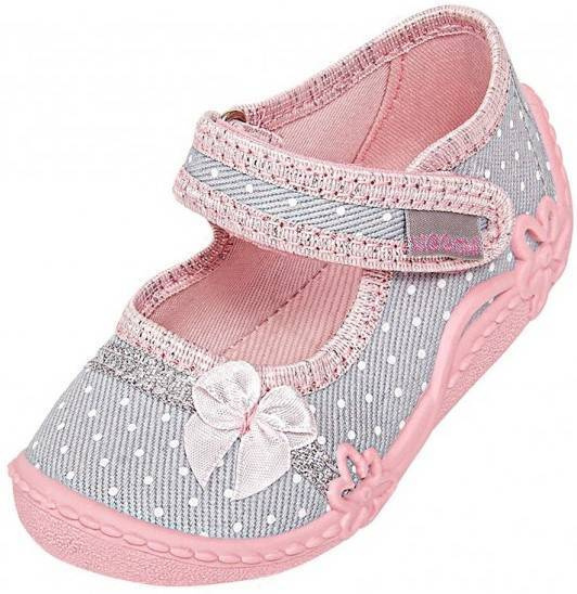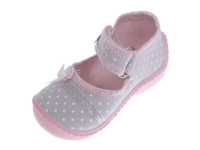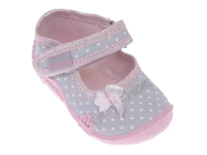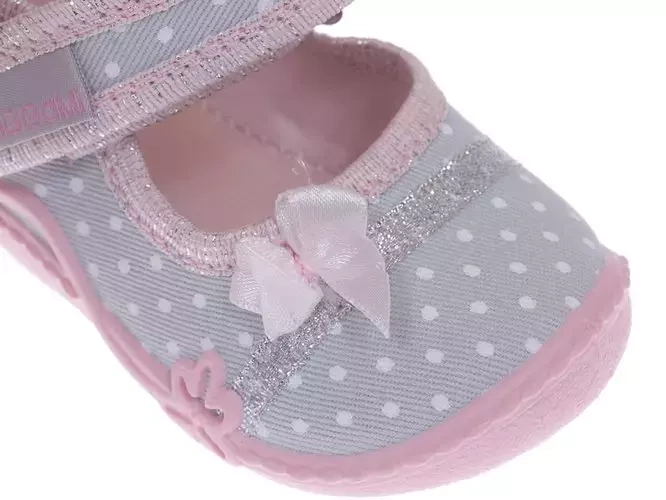 Tenisówki dziecięce Viggami AURELKA KROPKI szare kapcie dziewczęce na rzep