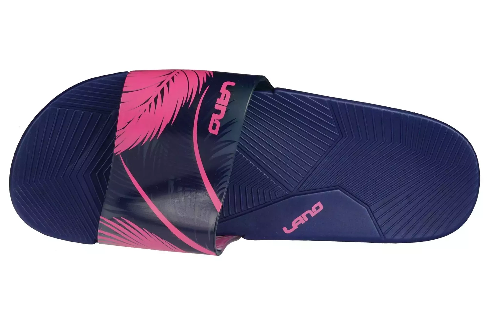 Klapki basenowe młodzieżowe firmy Lano w kolorze granatowym z ozdobnym wzorkiem w palmy. Prosty, klasyczny design w połączeniu z najwyższą jakością materiałów sprawia, że produkt ten sprawdzi się w różnych warunkach. Młodzieżowe klapki są lekkie oraz miękkie, co gwarantuje wysoki komfort użytkowania. Model ten jest stworzony z wytrzymałego materiału, który zapobiega przed ślizganiem. Idealnie sprawdzą się na wyjazdy wakacyjne, basen czy do ogrodu, jak również do codziennego użytku domowego.