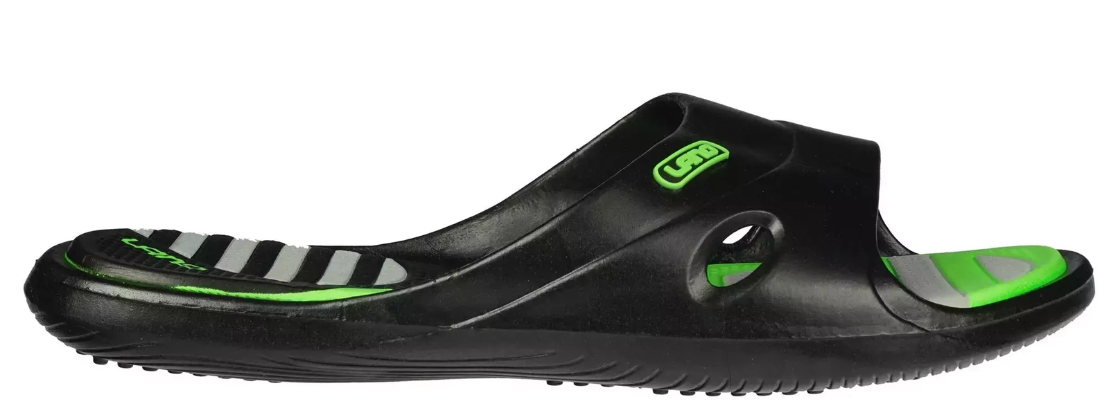Klapki basenowe młodzieżowe firmy Lano w kolorze czarnym. Prosty, klasyczny design w połączeniu z najwyższą jakością materiałów sprawia, że produkt ten sprawdzi się w różnych warunkach. Młodzieżowe klapki są lekkie oraz miękkie, co gwarantuje wysoki komfort użytkowania. Wkładka wewnętrzna jest bardzo przyjazna dla skóry, wygodna i miękka. Model ten jest stworzony z wytrzymałego materiału, który zapobiega przed ślizganiem. Idealnie sprawdzą się na wyjazdy wakacyjne, basen czy do ogrodu, jak również do codziennego użytku domowego.