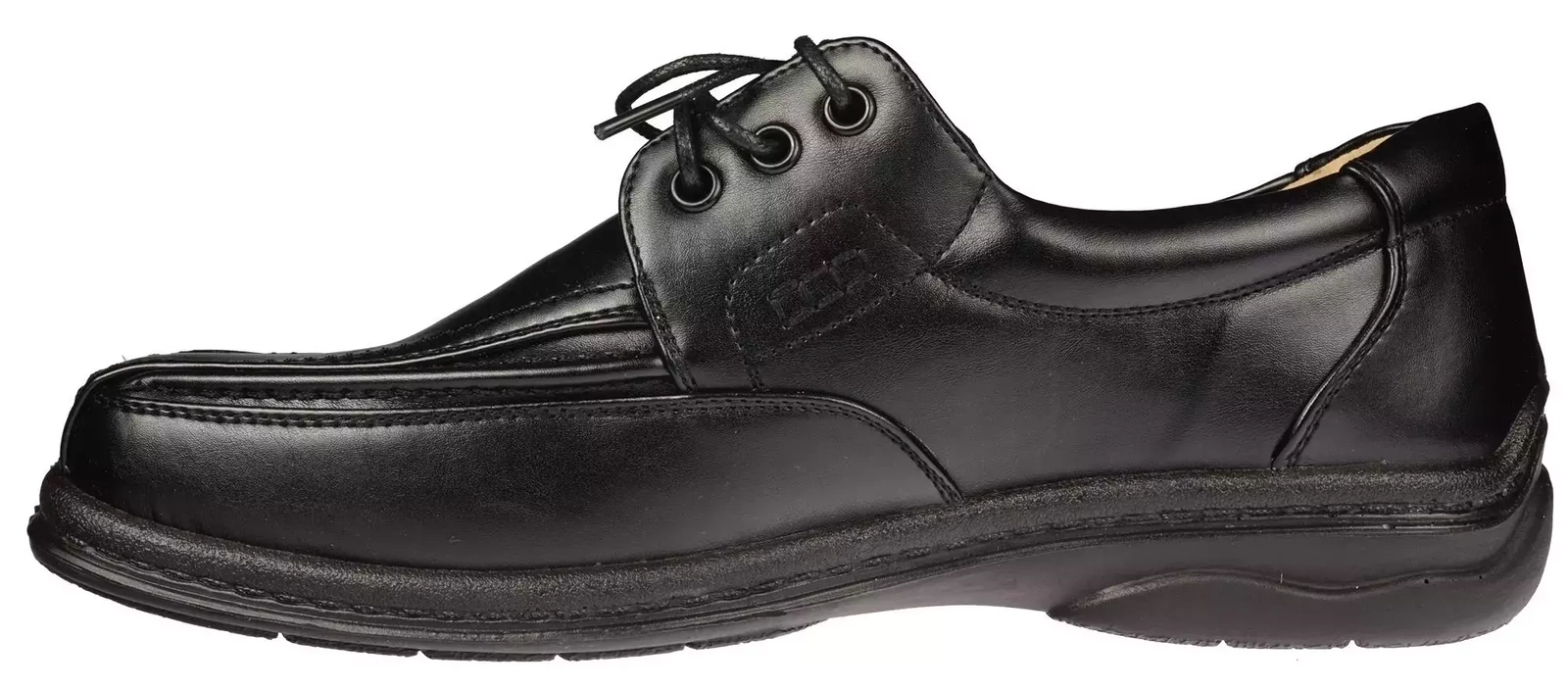 - Półbuty męskie firmy LinShi w kolorze czarnym na płaskiej podeszwie. Cholewka wykonana z wysokiej jakości skóry ekologicznej, wnętrze i wkładka ze skóry naturalnej. Sprawdzą się one na wszelkiego rodzaju imprezy i specjalne wydarzenia.